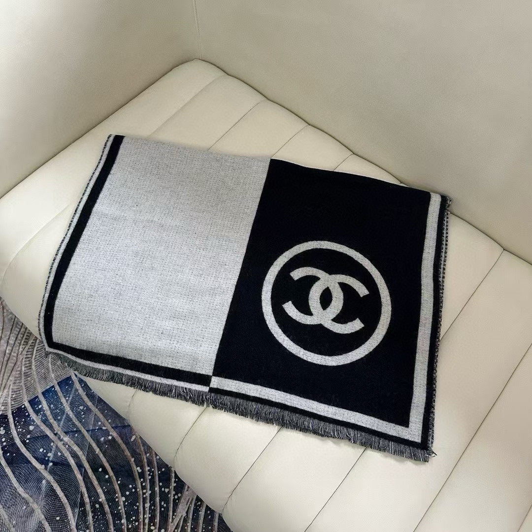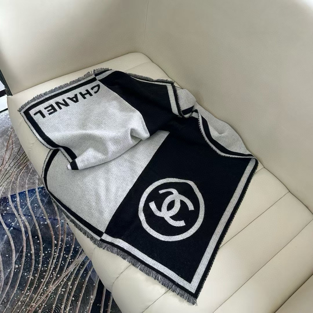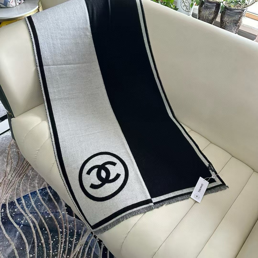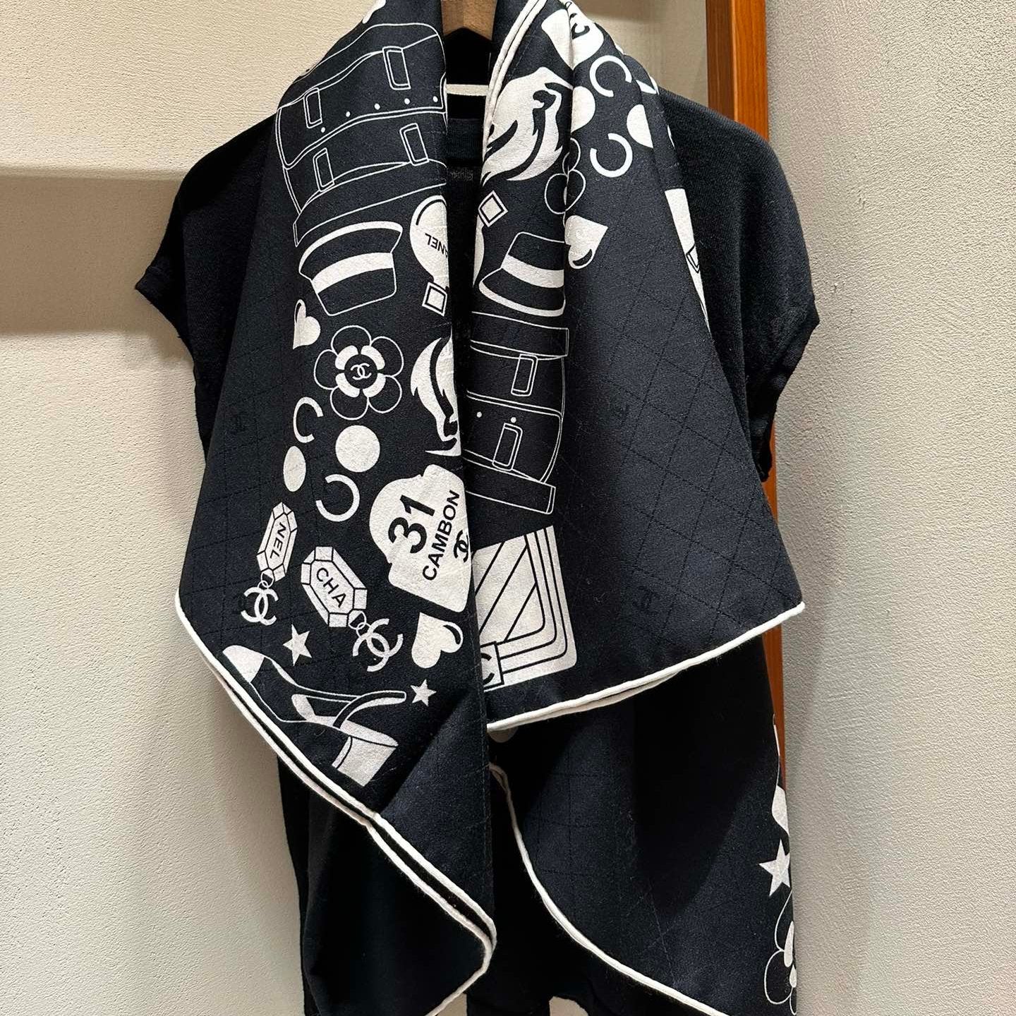 CC Scarf 180 CM In Black Mix White Print Logo Cashmere And Wool 413631