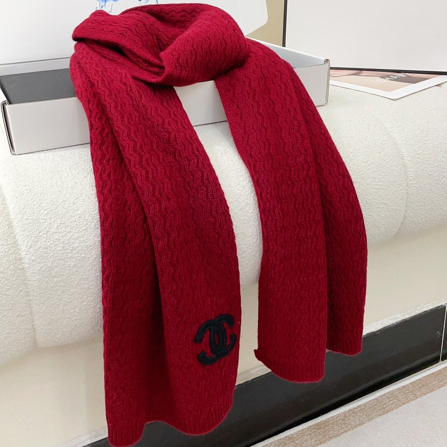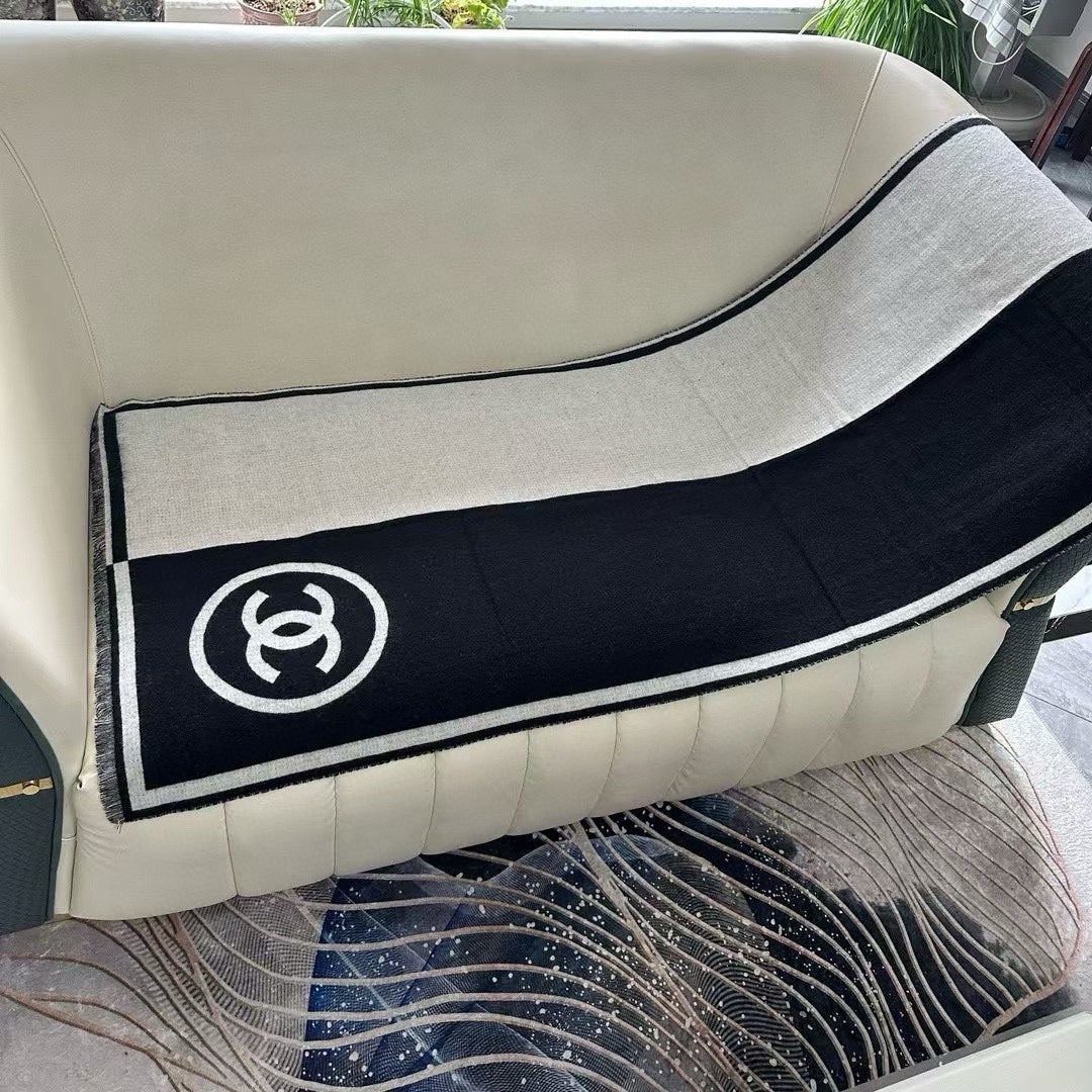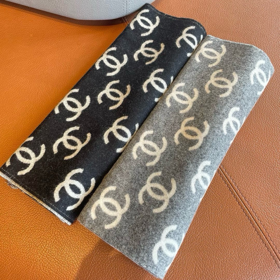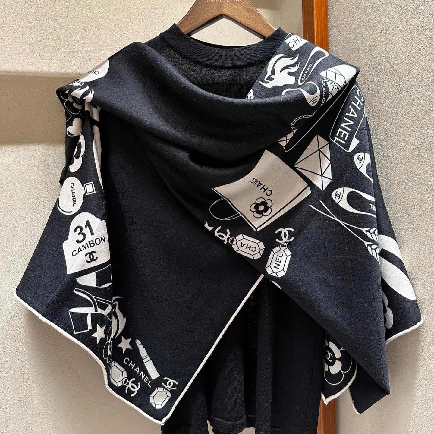 CC Scarf 180 CM In Black Mix White Print Logo Cashmere And Wool 413631