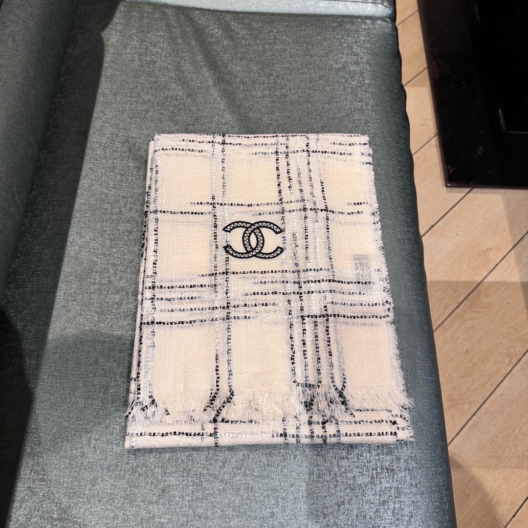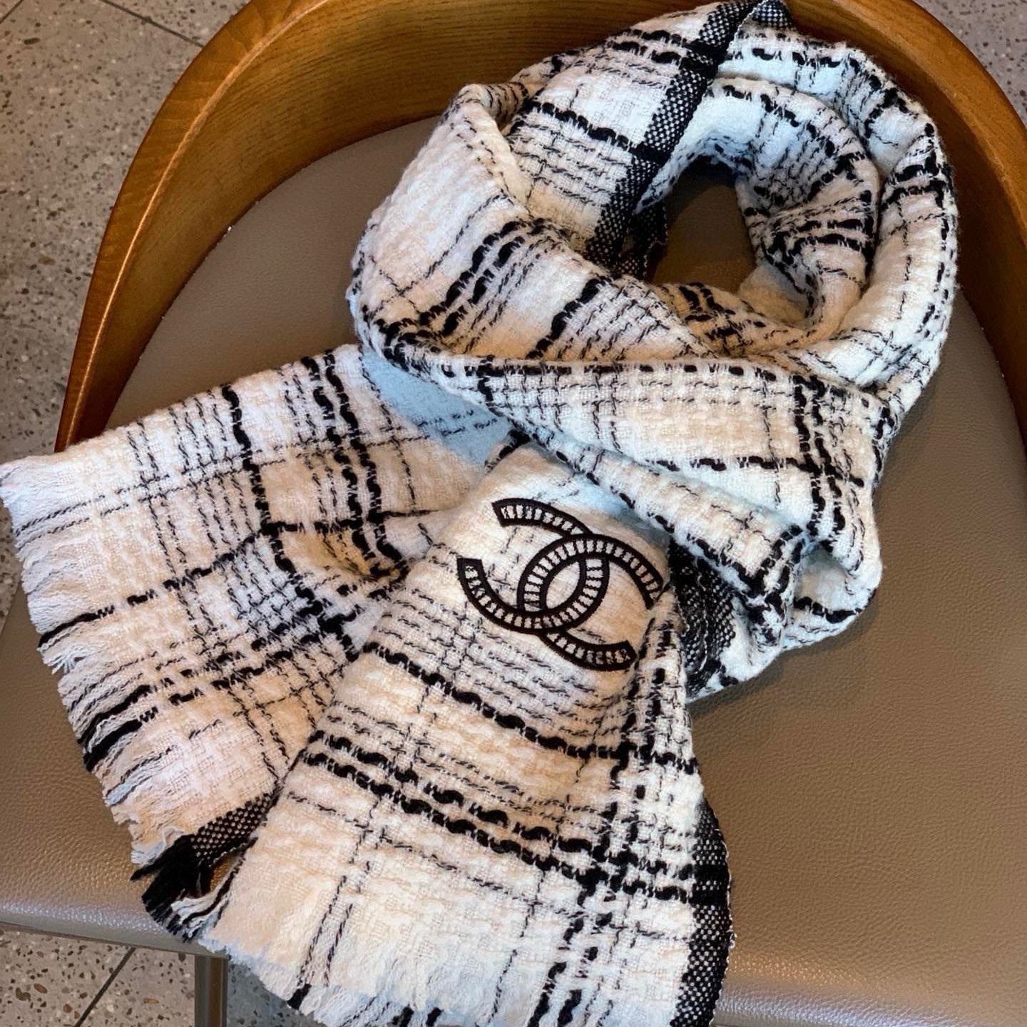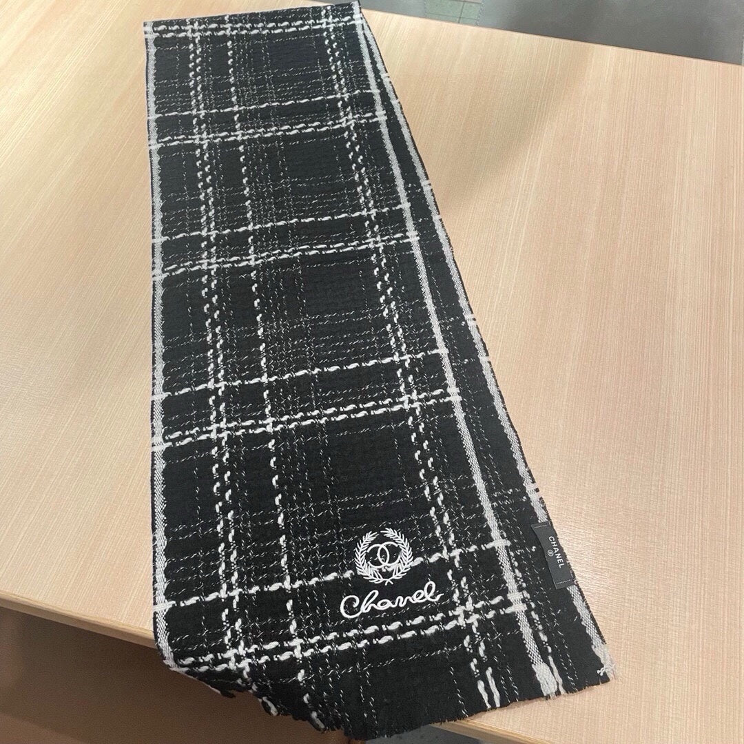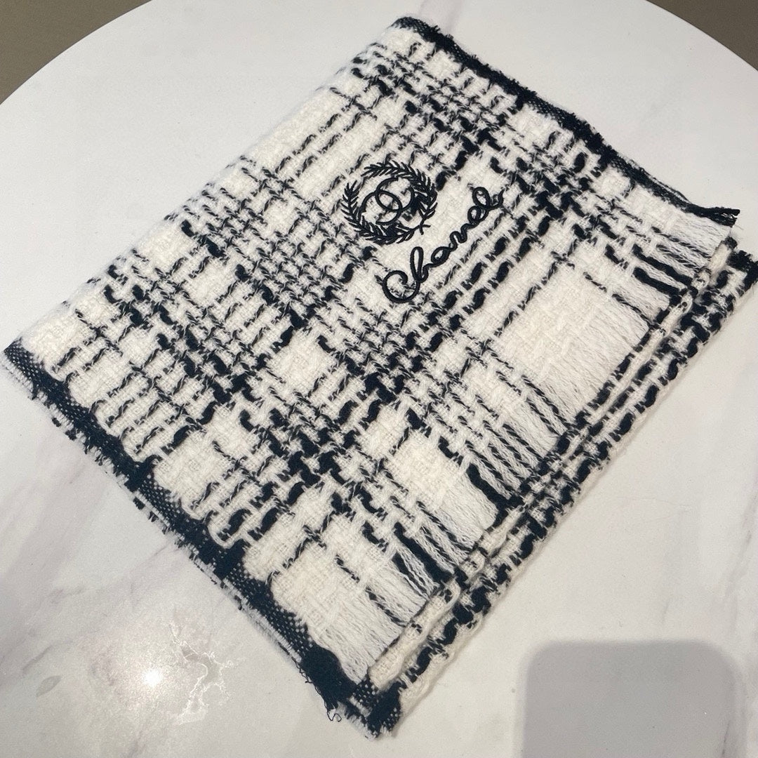 CC Scarf 190 CM In Black And White Plaid Cashmere Mix Wool And Silk 418284
