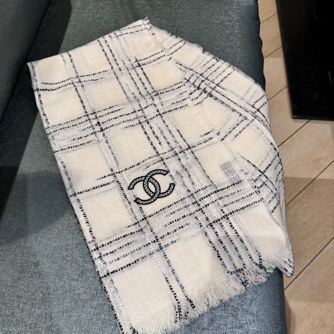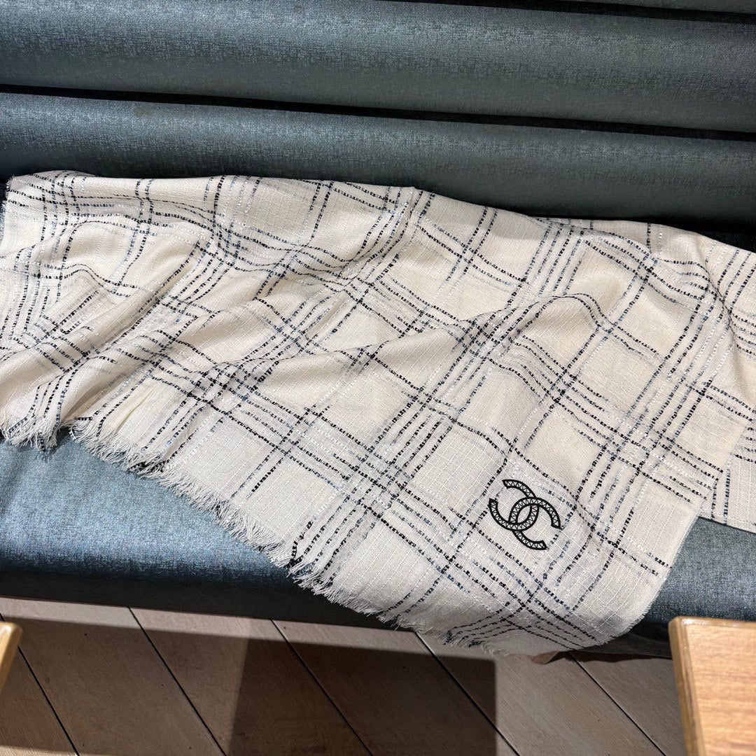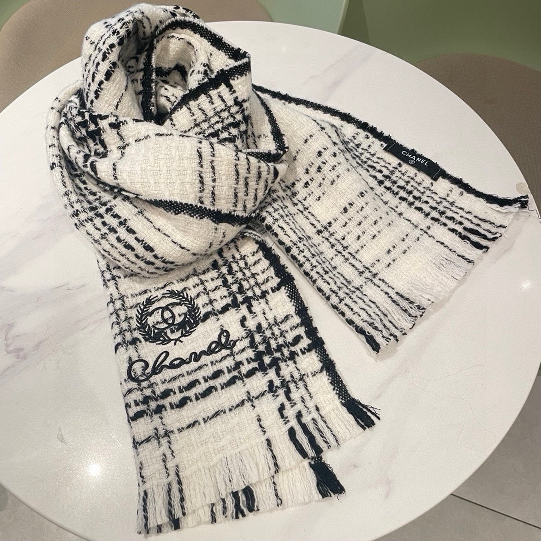 CC Scarf 190 CM In Black And White Plaid Cashmere Mix Wool And Silk 418284