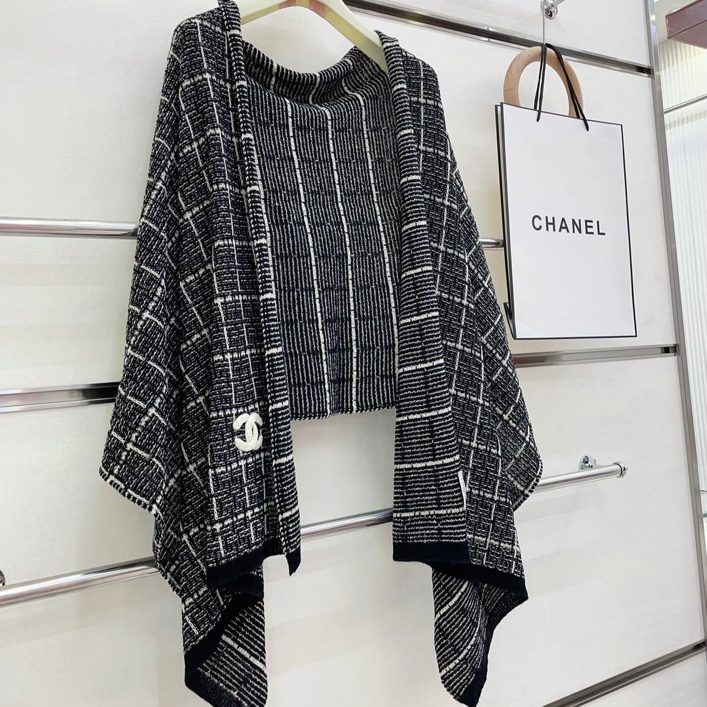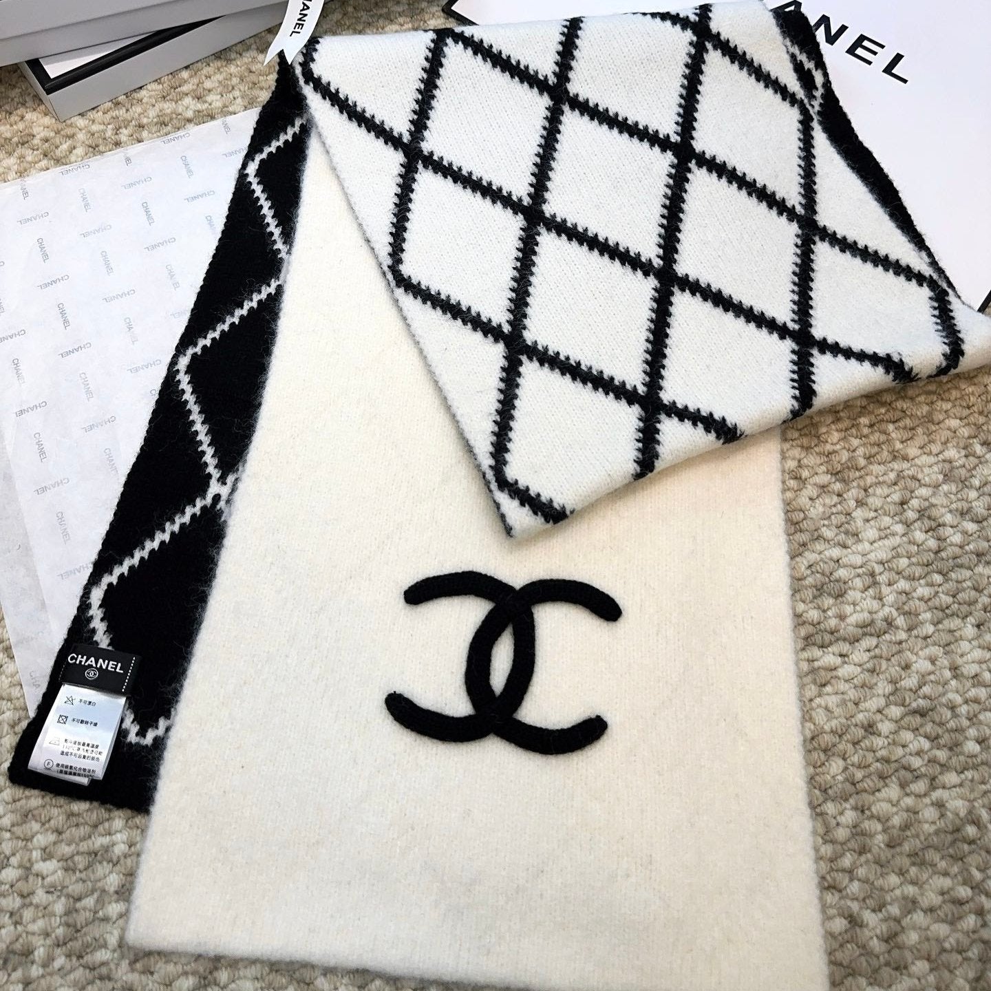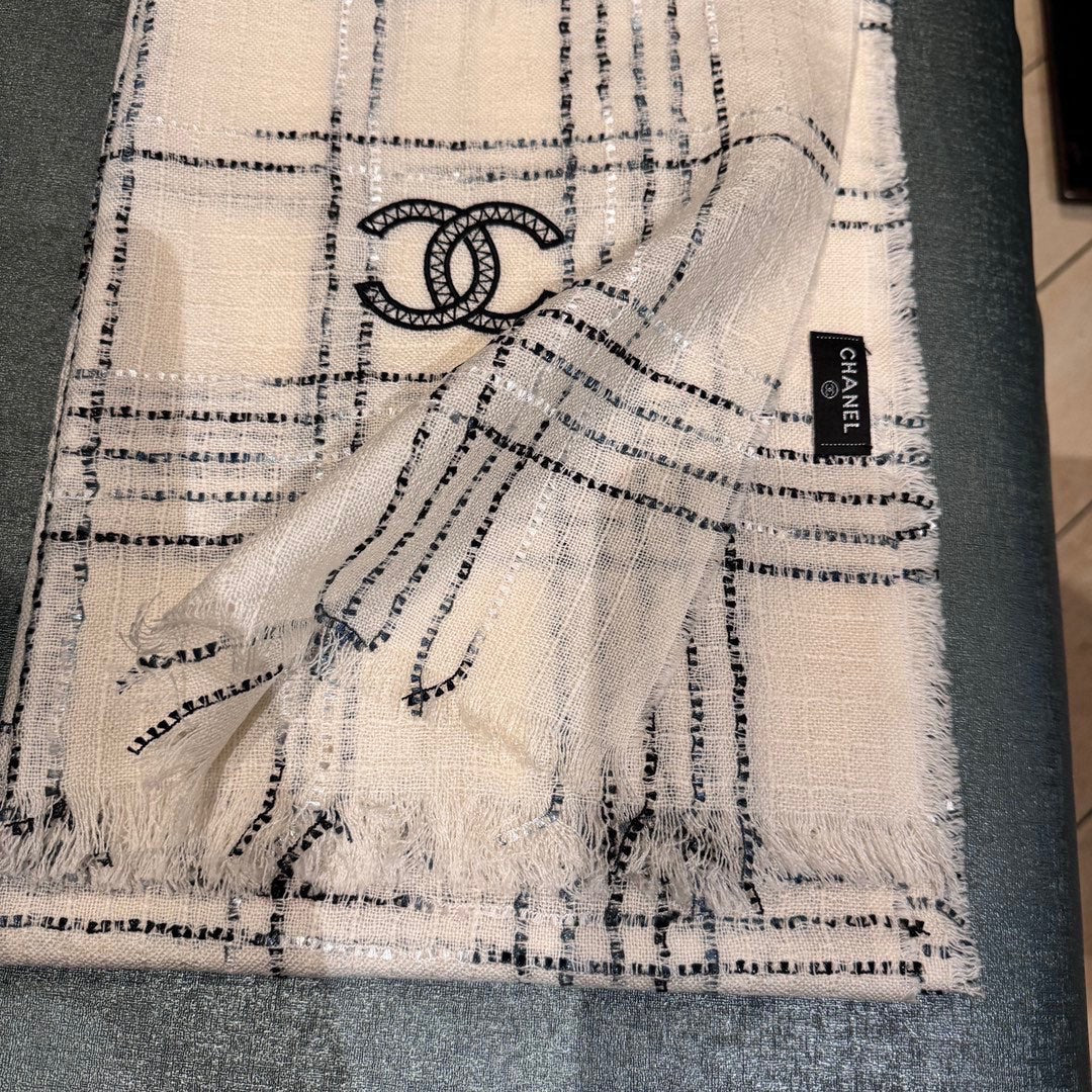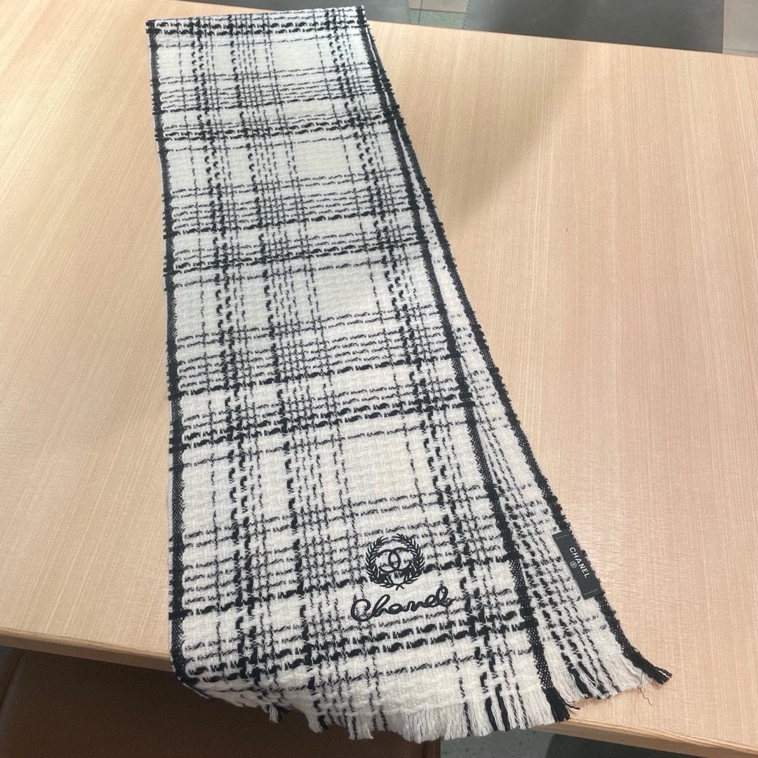 CC Scarf 190 CM In Black And White Plaid Cashmere Mix Wool And Silk 418284