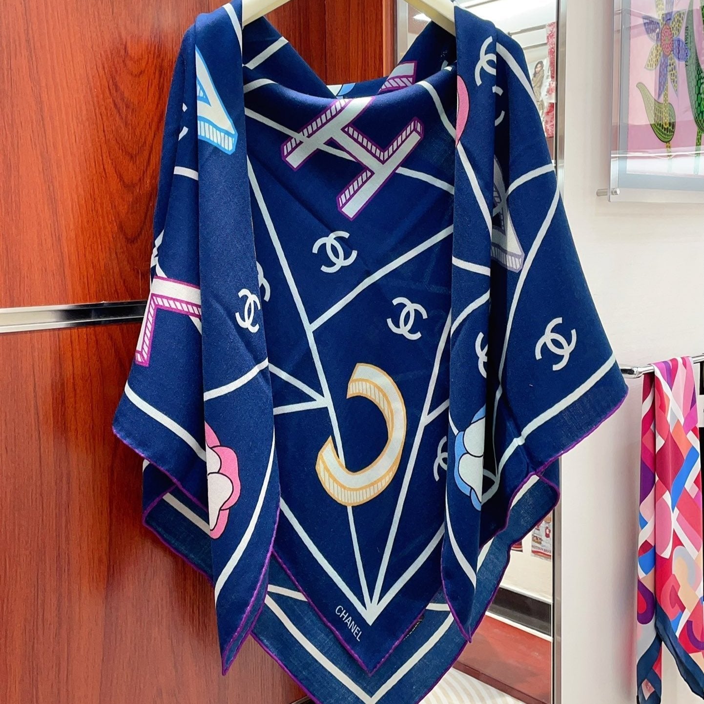 CC Square Scarf 140 CM In Blue Colorful Cashmere And Silk 418215