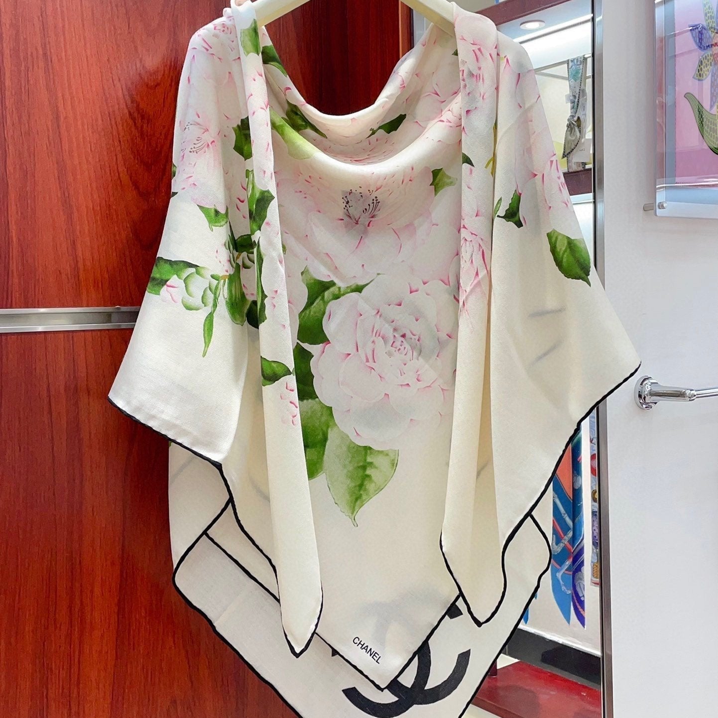 CC Square Scarf 140 CM In White Black Silk Cashmere 413676