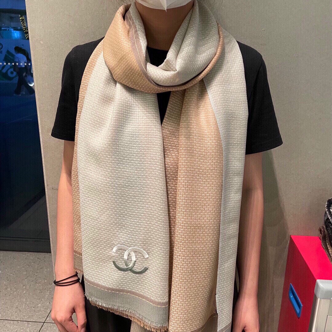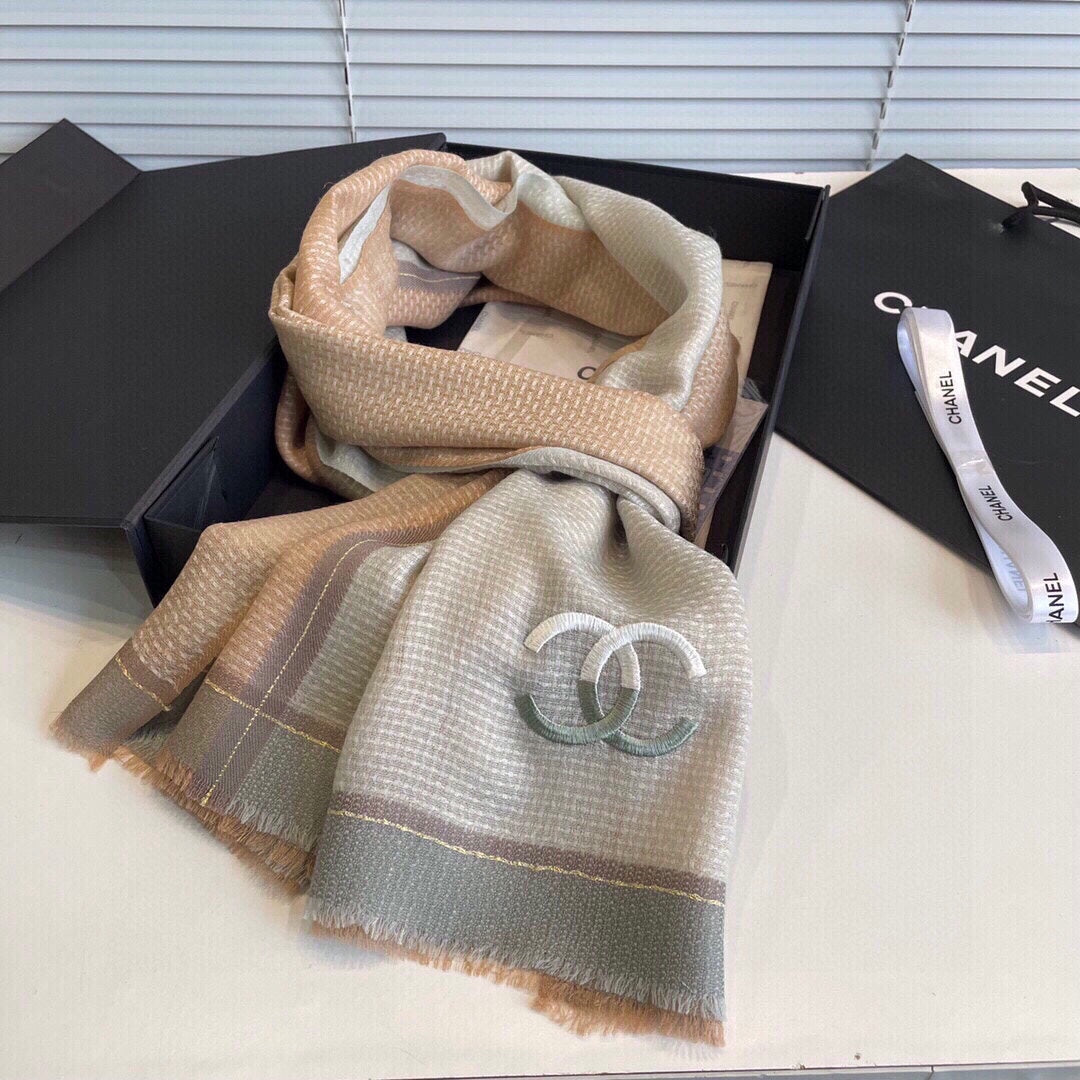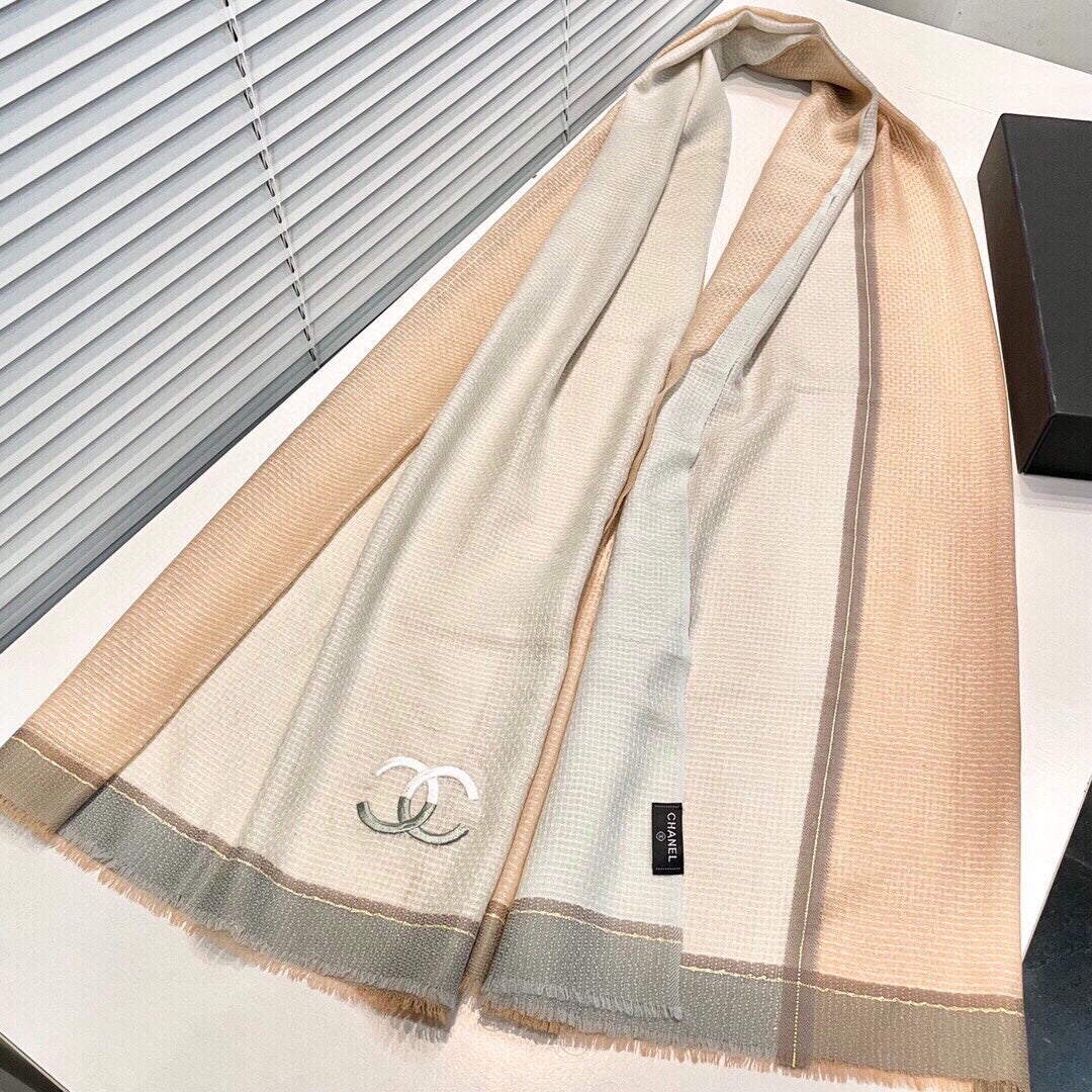 CC Scarf 200 CM In Light Brown Yellow Mix White Ivory Cashmere 413836