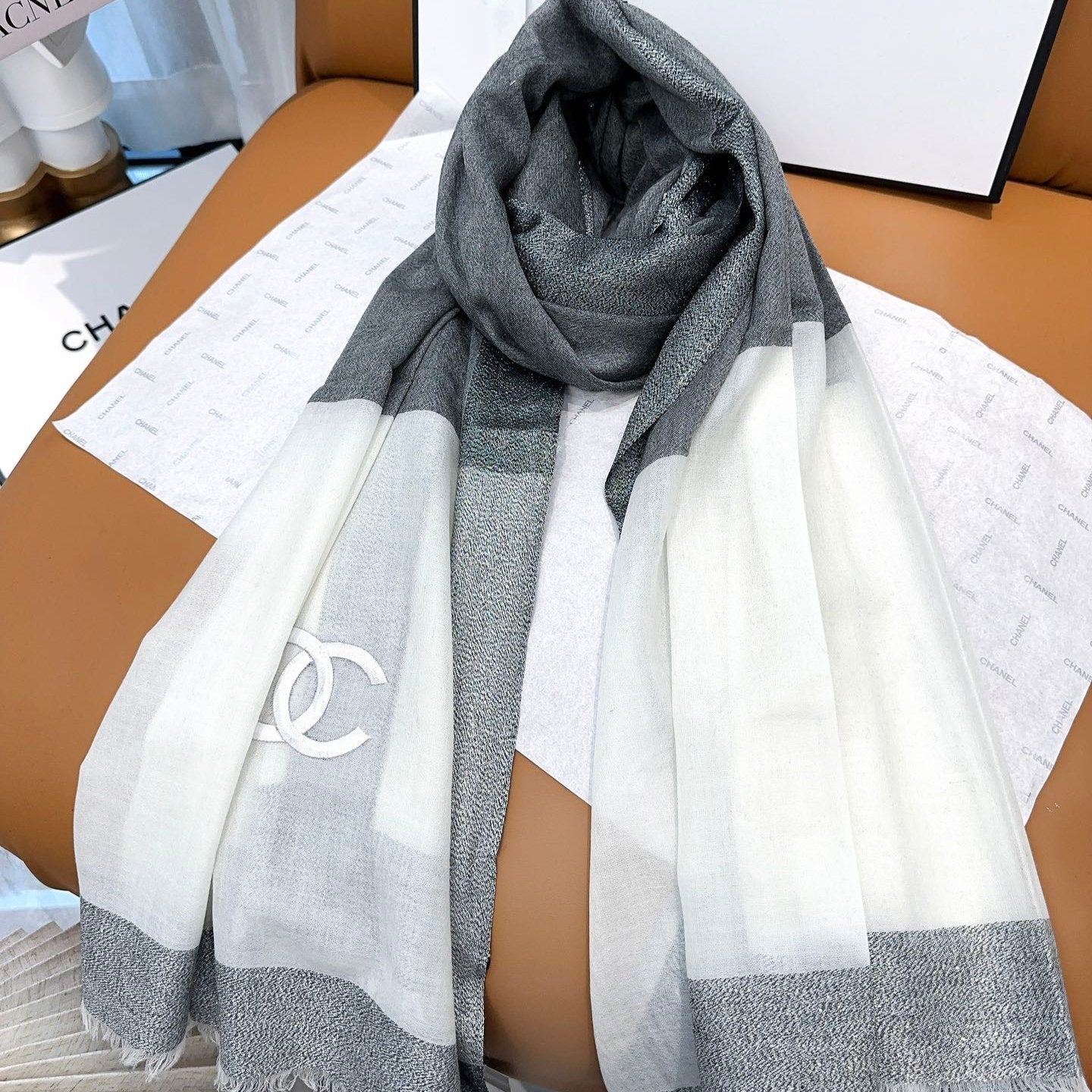CC Scarf 180 CM In Grey Mix White Print Logo Cashmere And Wool 413632