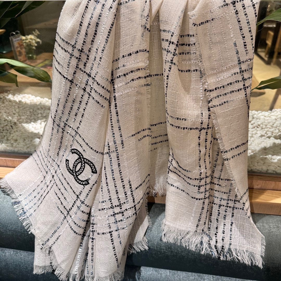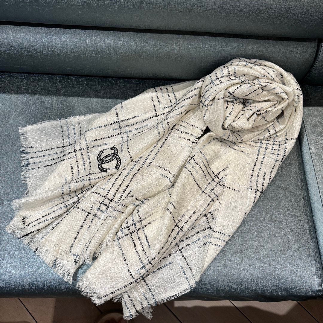 CC Scarf 200 CM In White Mix Beige Light Linen Fabric 418194