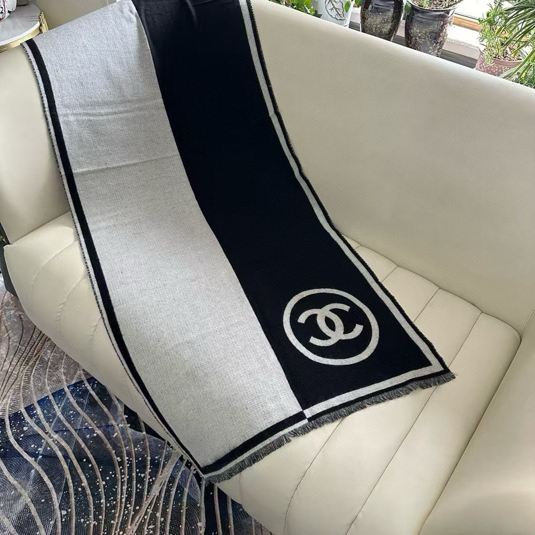 CC Scarf 186 CM In Black With White Stripes Fleece Wool 418246