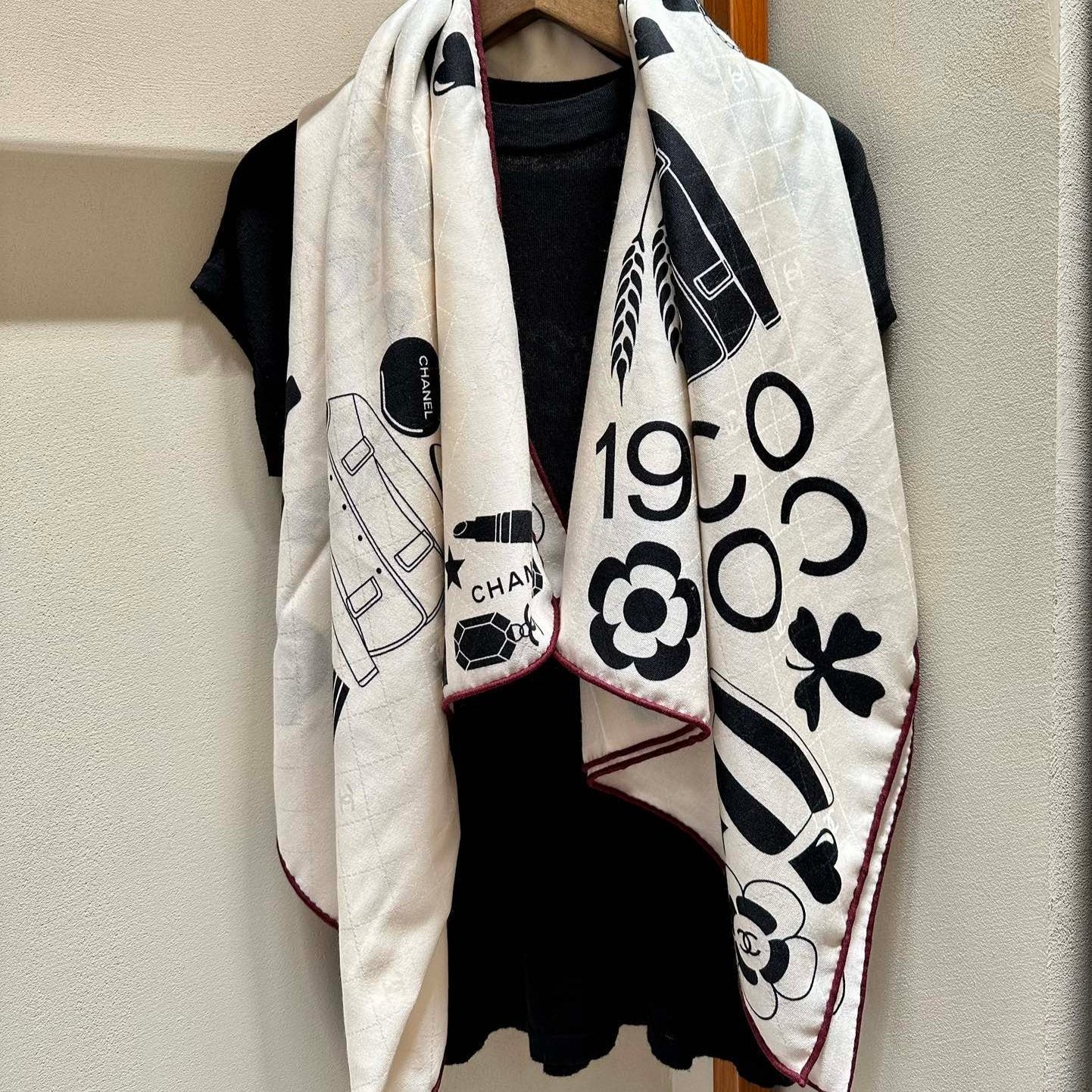CC Square Scarf 140 CM In White Black Cashmere And Silk 416900