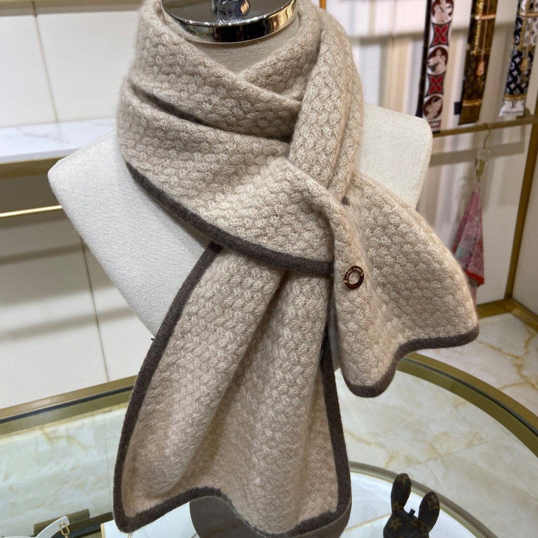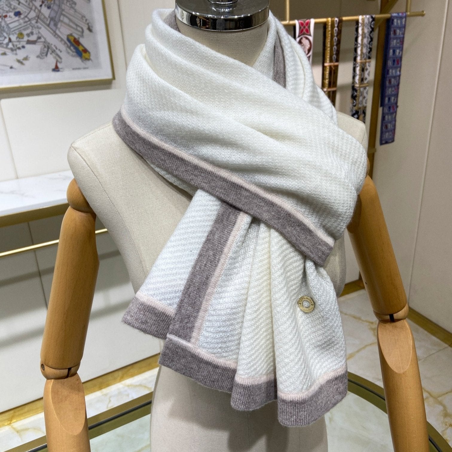 LP Scarf 125 CM In White With Earth Brown Border Cashmere 201757