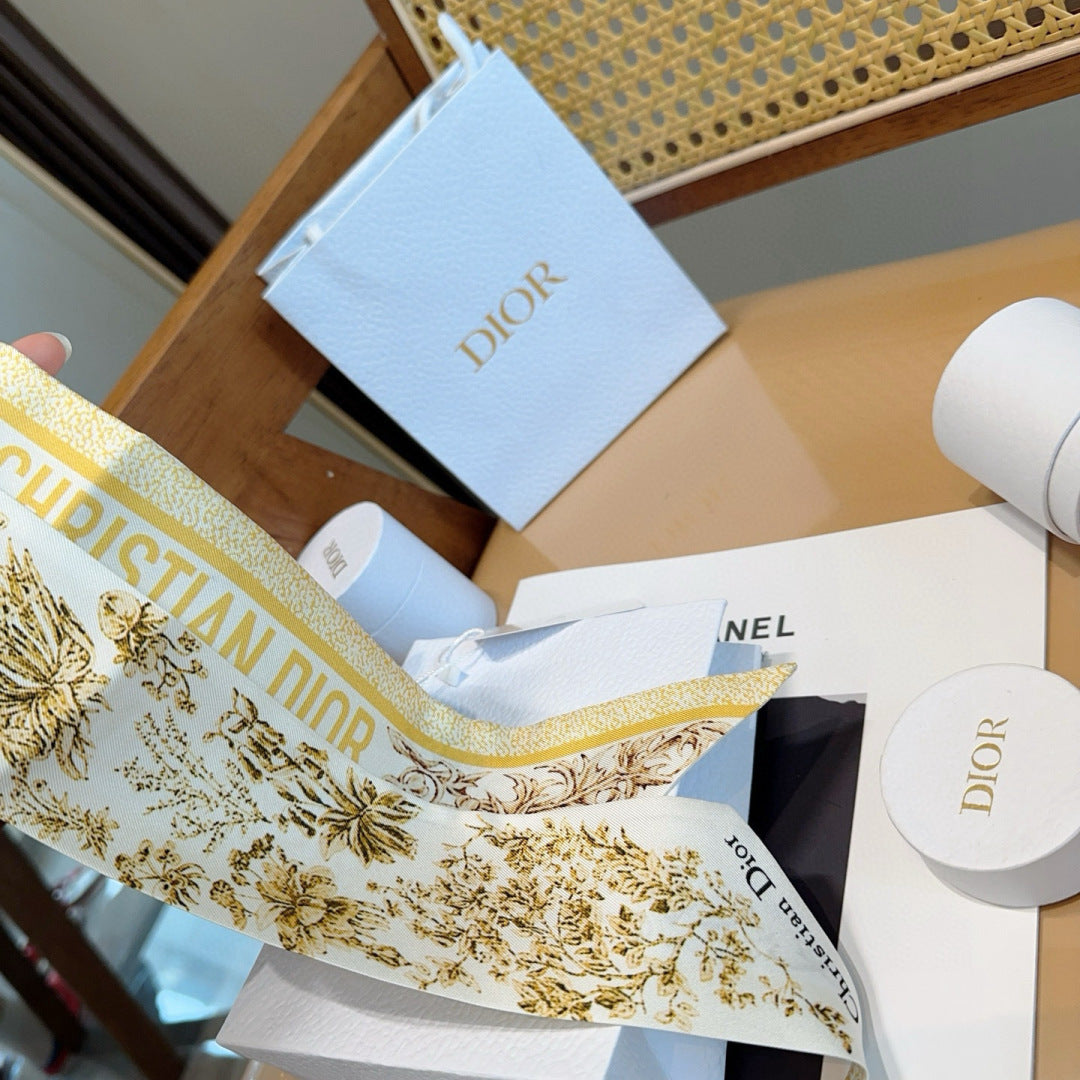 CD Twilly Mini Scarf 105cm Yellow Colorful Mulberry Silk 941921