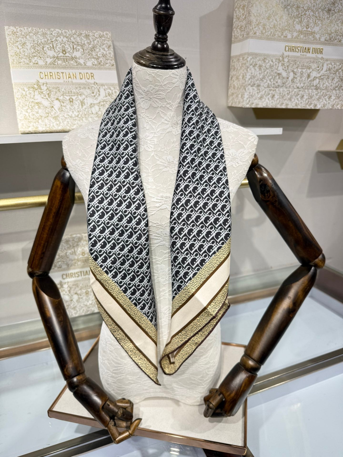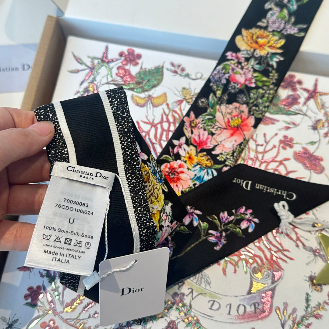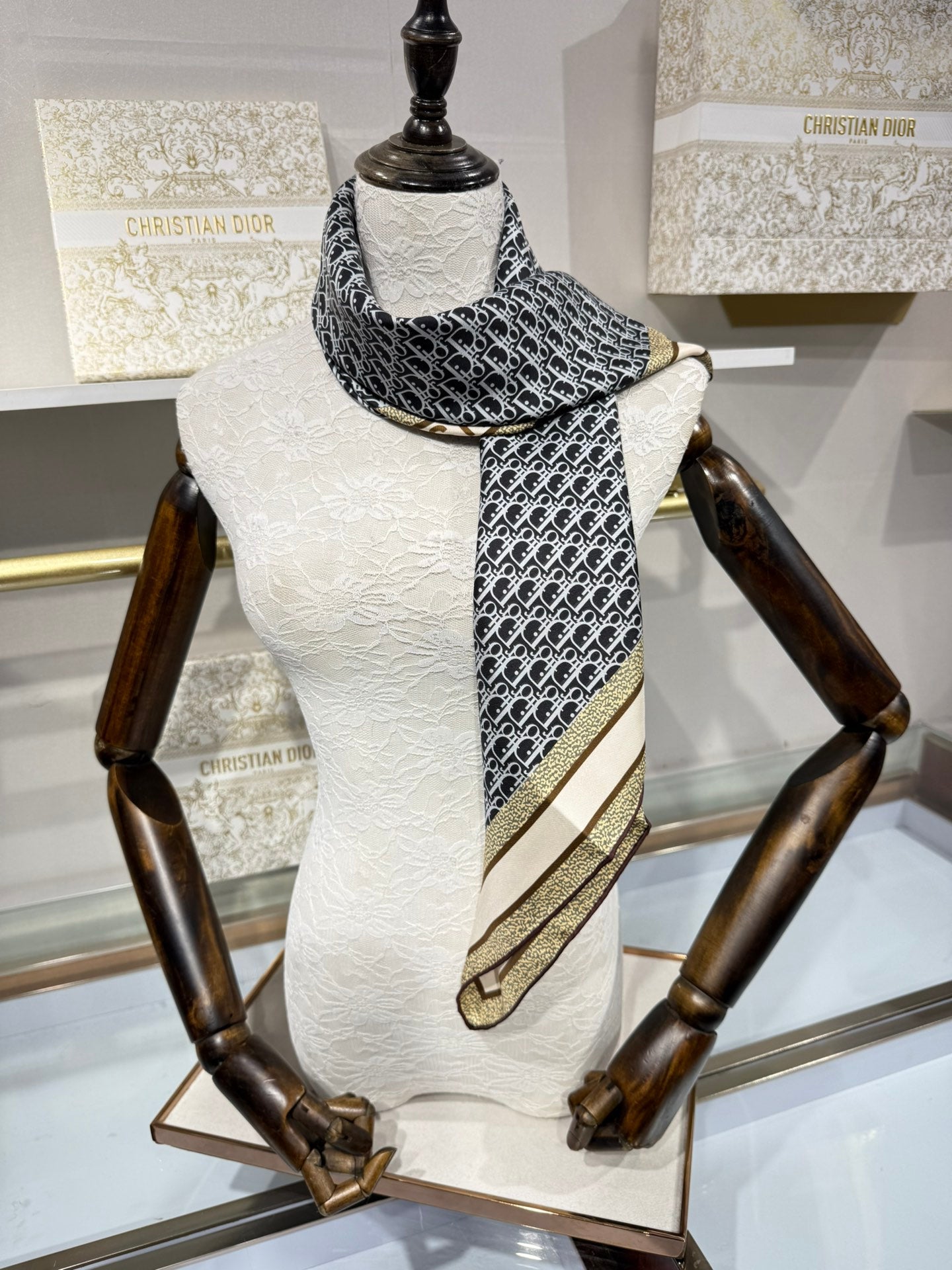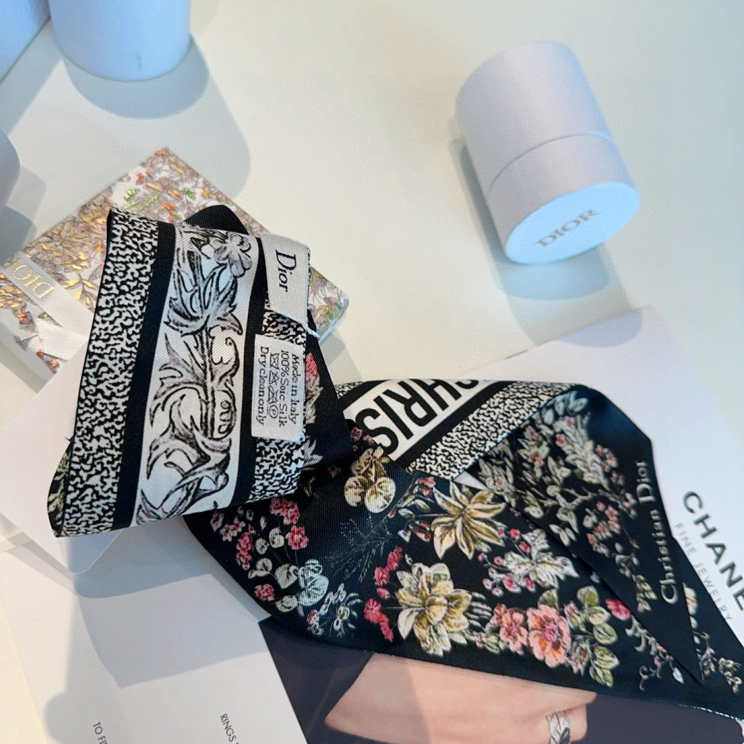 CD Twilly Mini Scarf 105cm Black White Mulberry Silk 957050