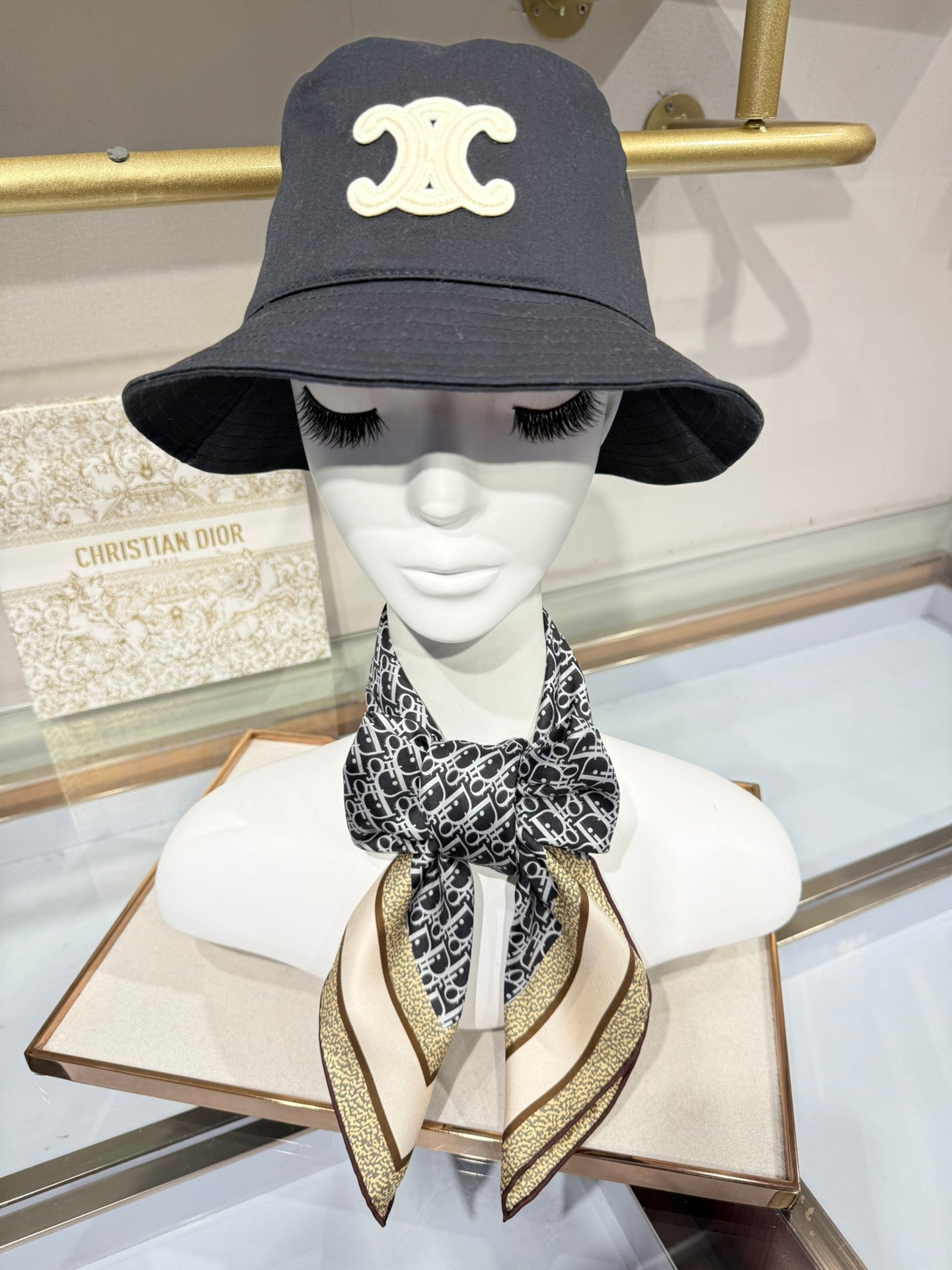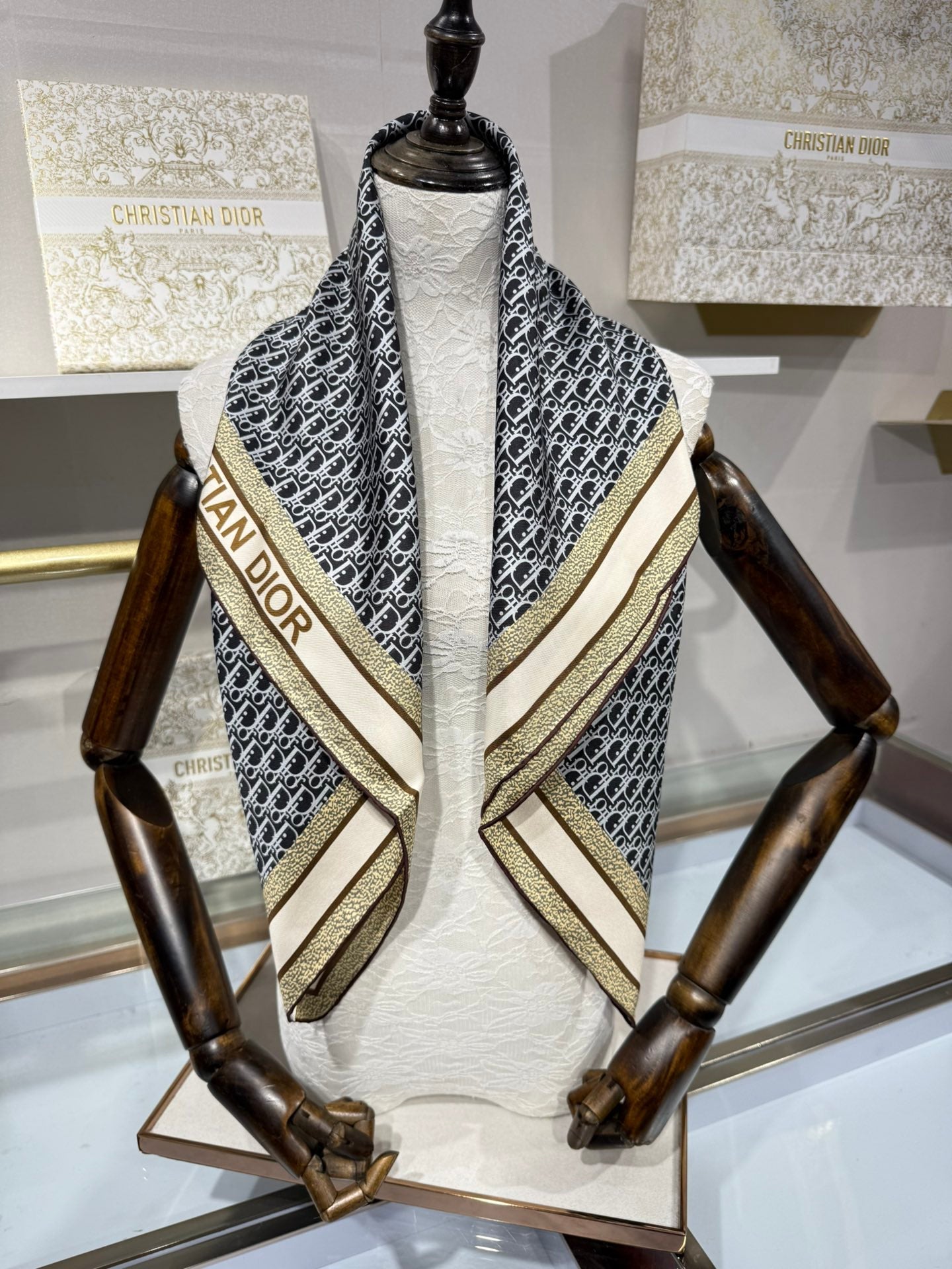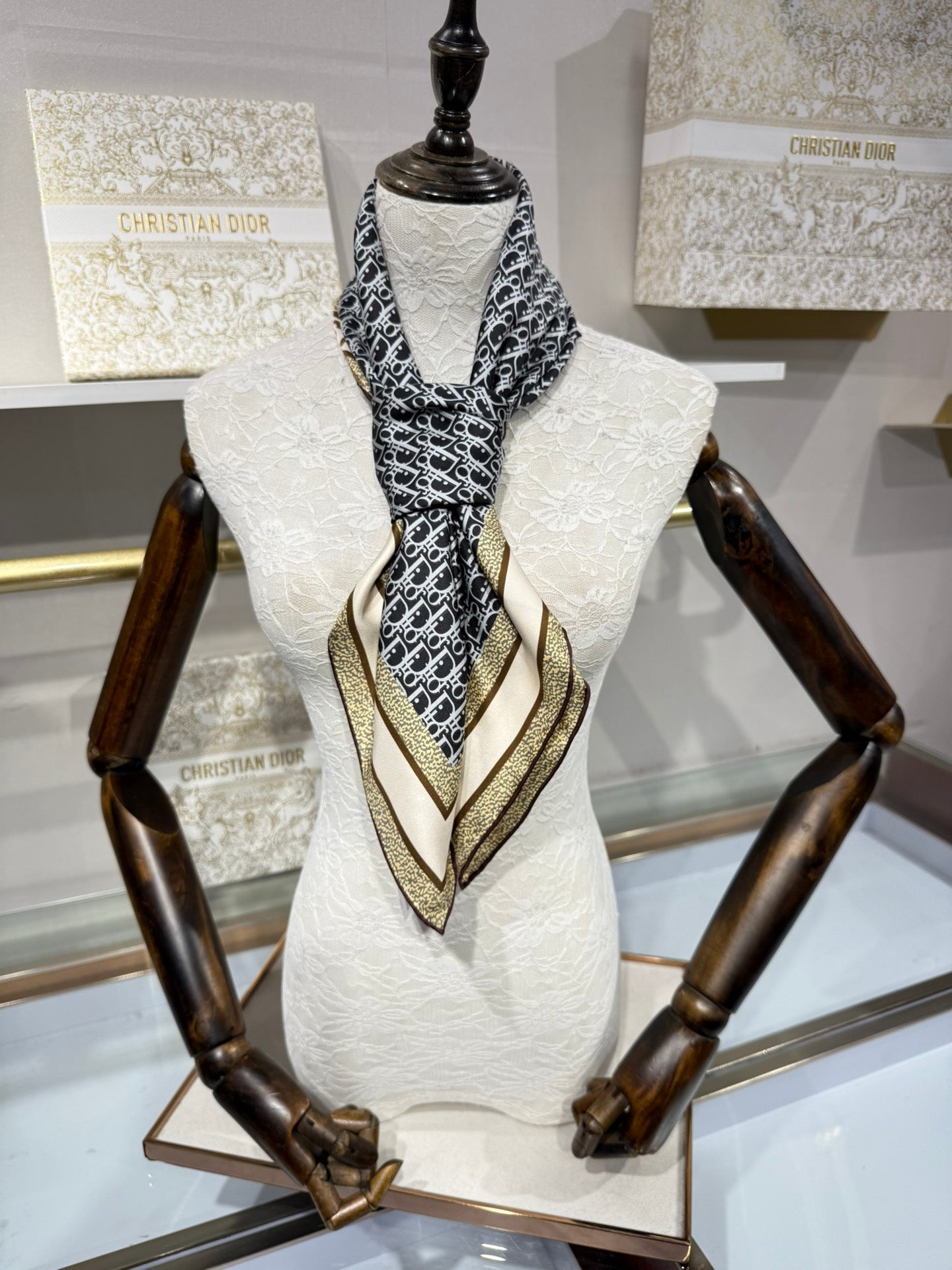 CD Twilly Mini Scarf 105cm Black White Mulberry Silk 957050