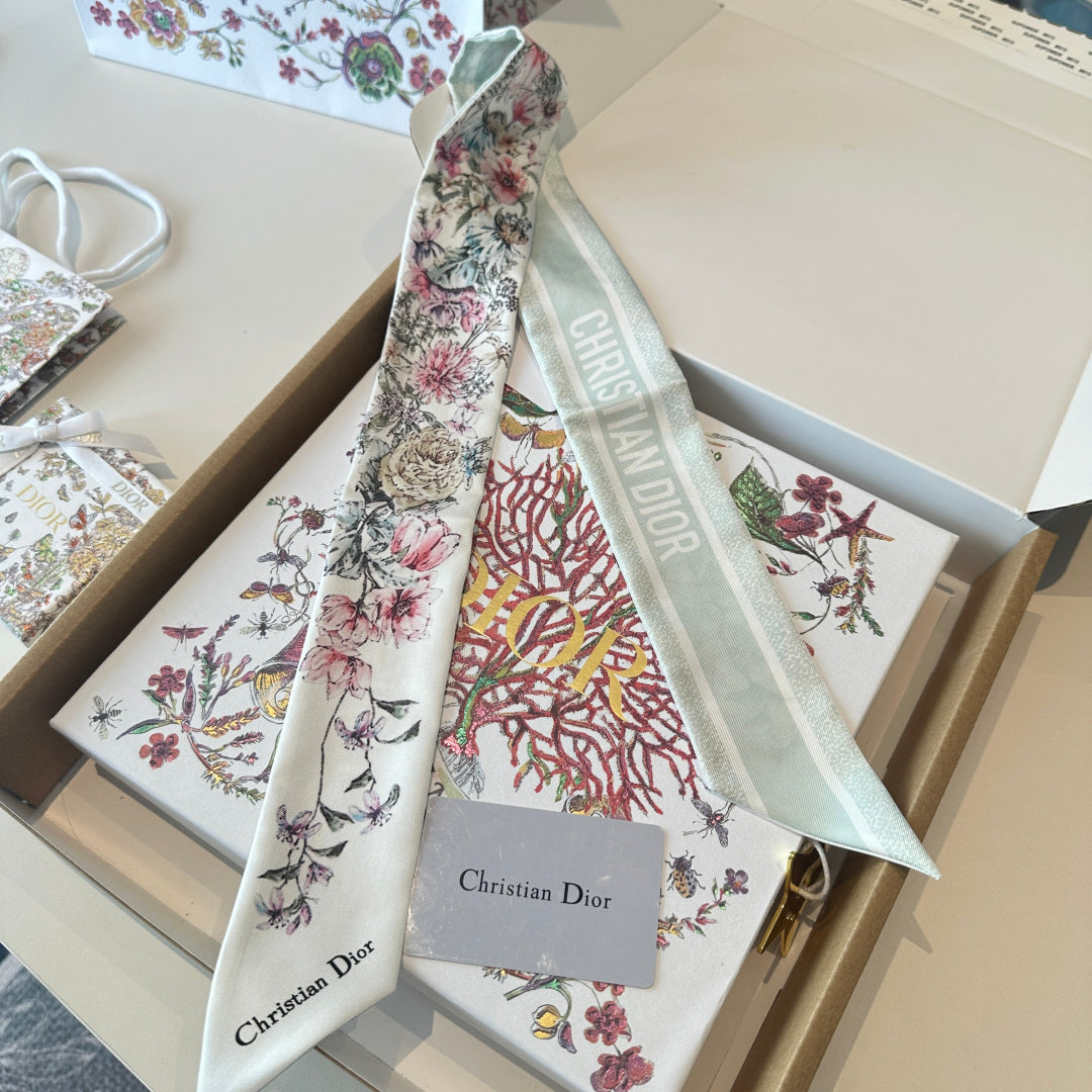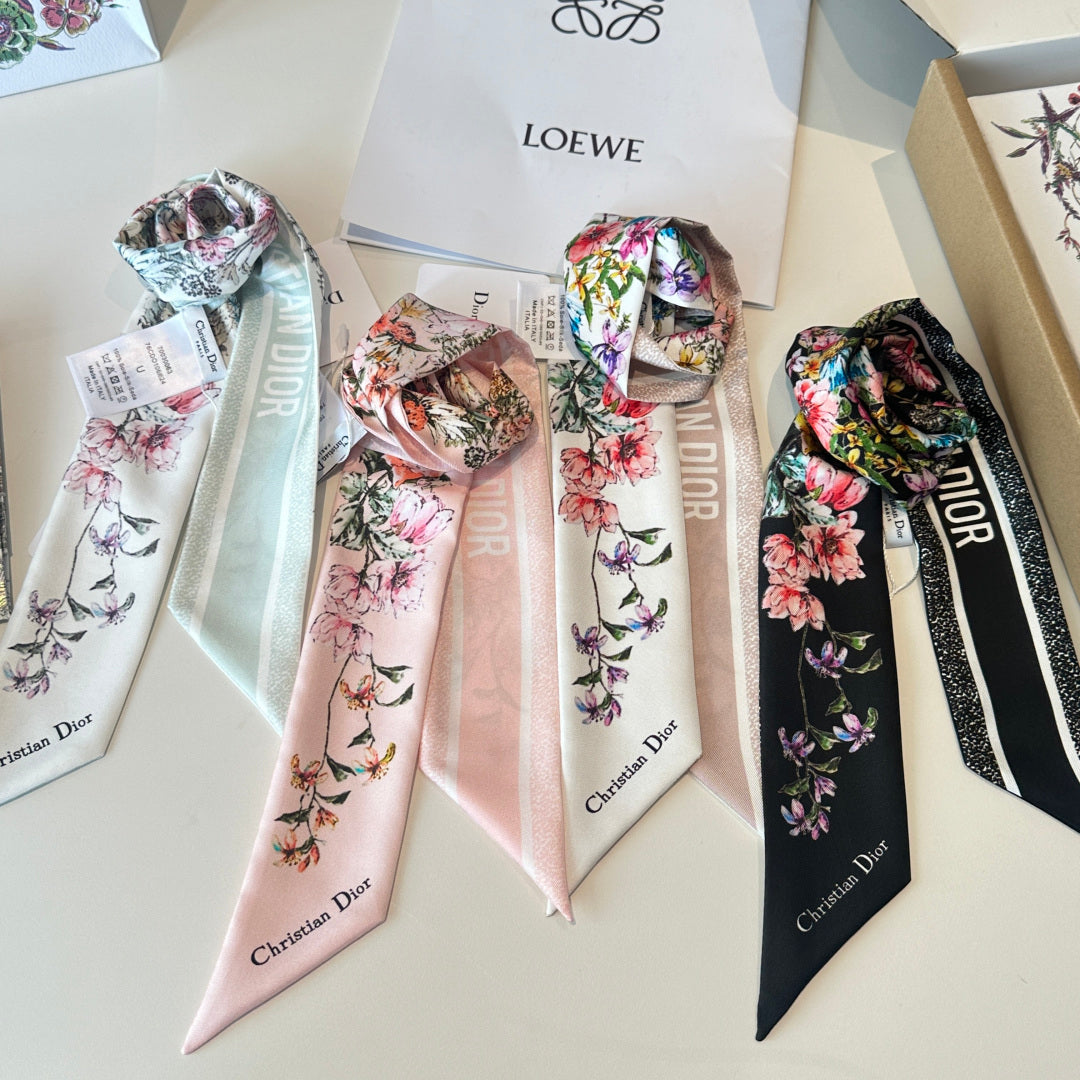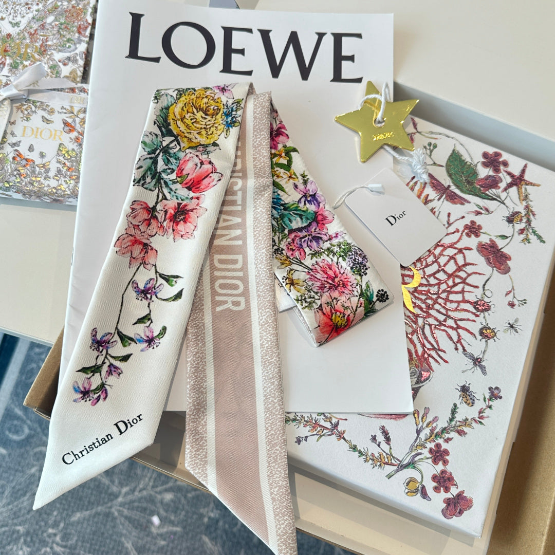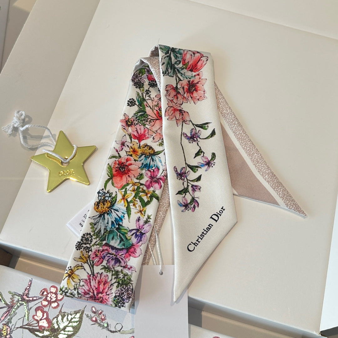 CD Twilly Mini Scarf 105cm White Light Pink Colorful Mulberry Silk 902531