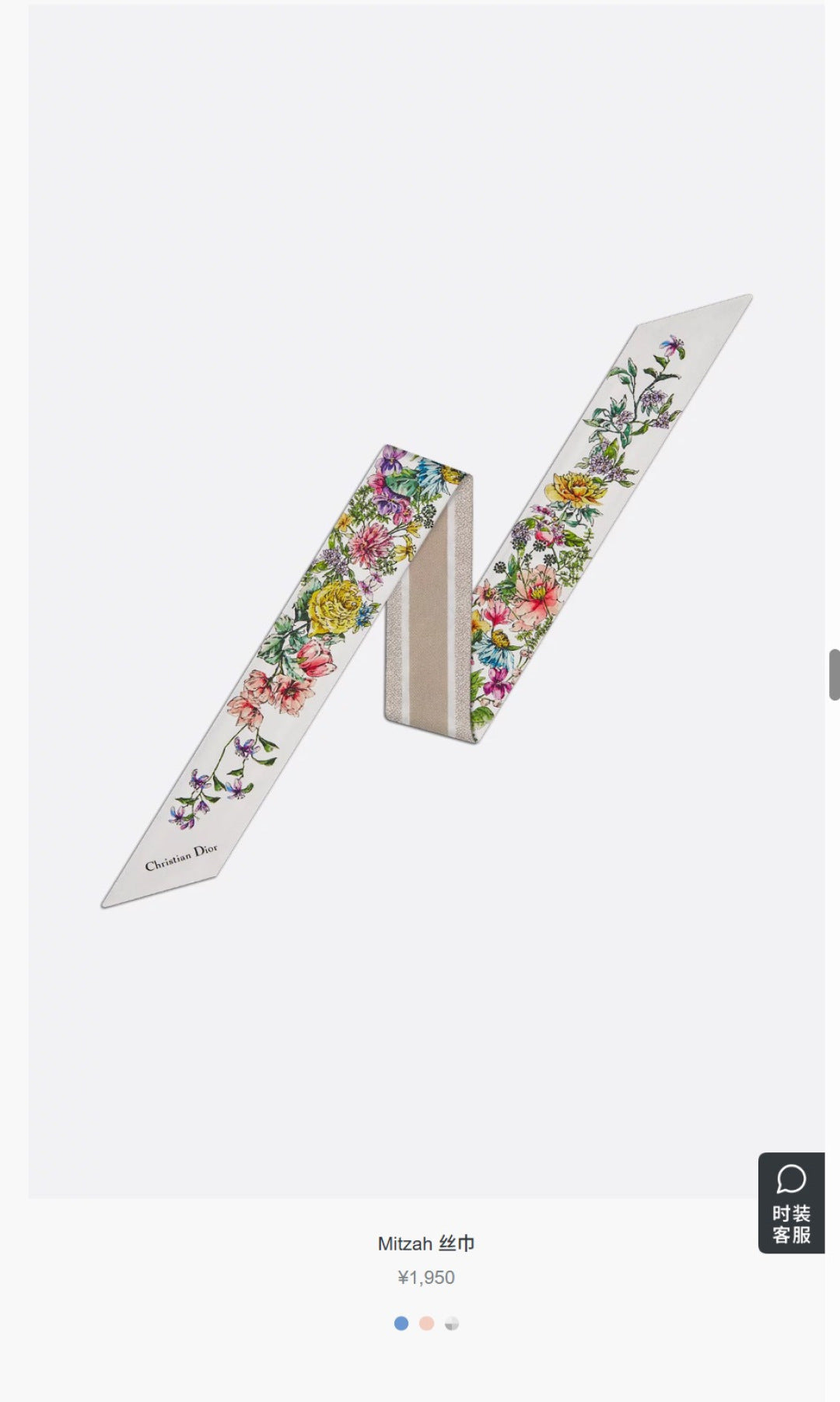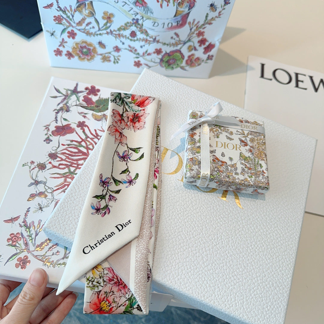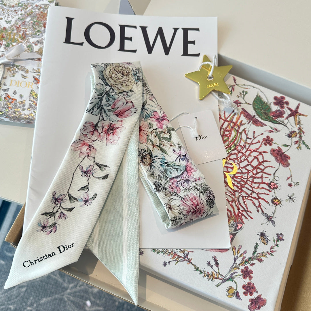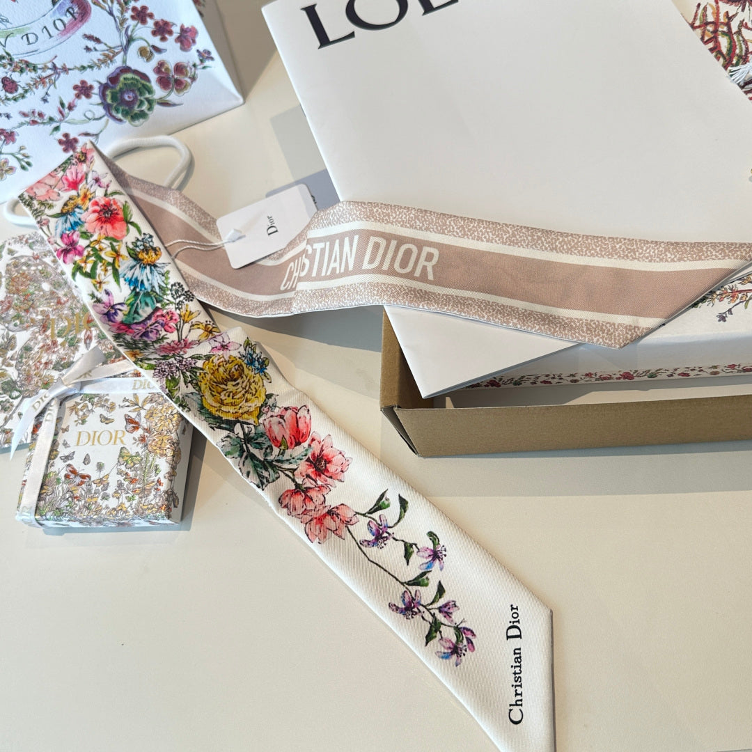 CD Twilly Mini Scarf 105cm White Light Pink Colorful Mulberry Silk 902531