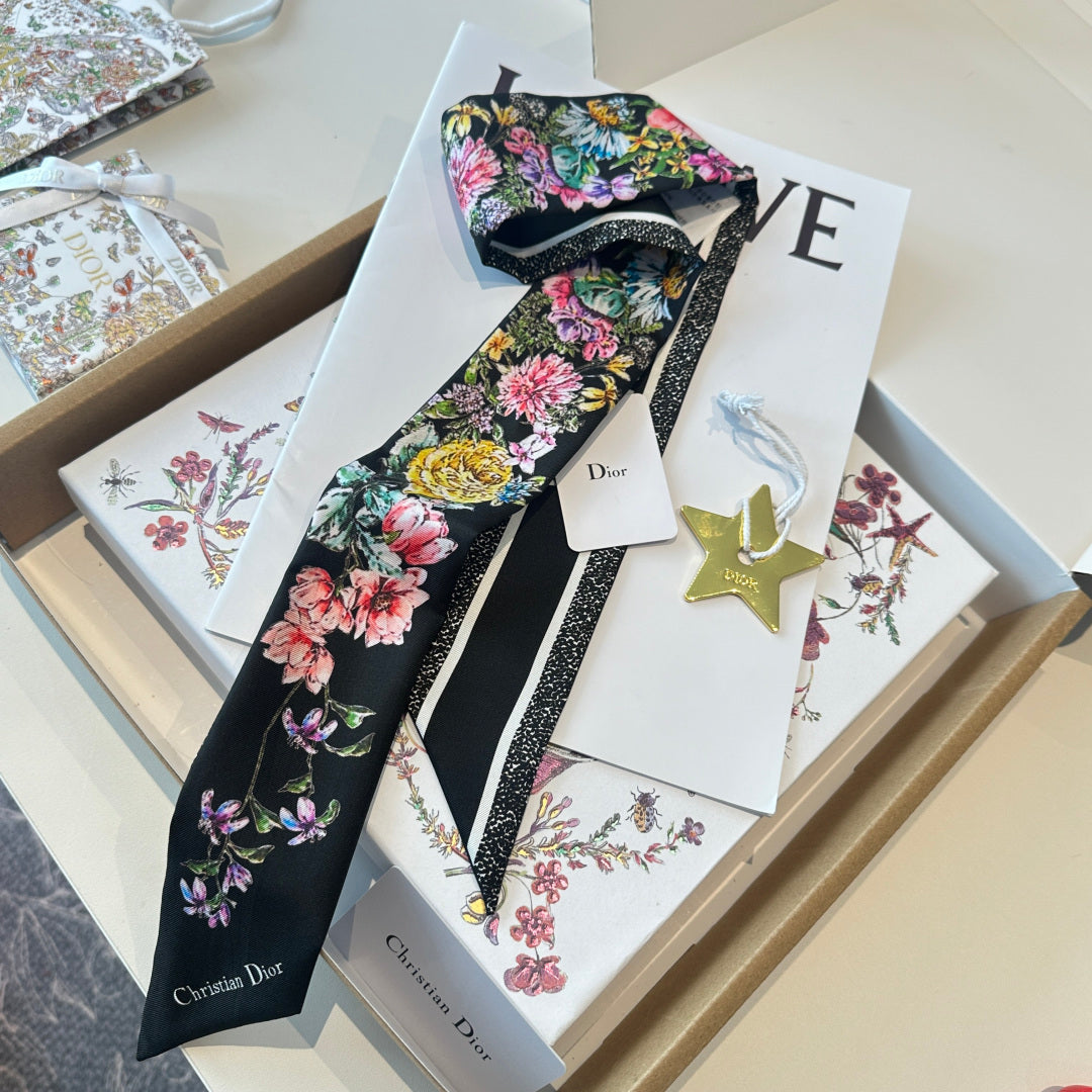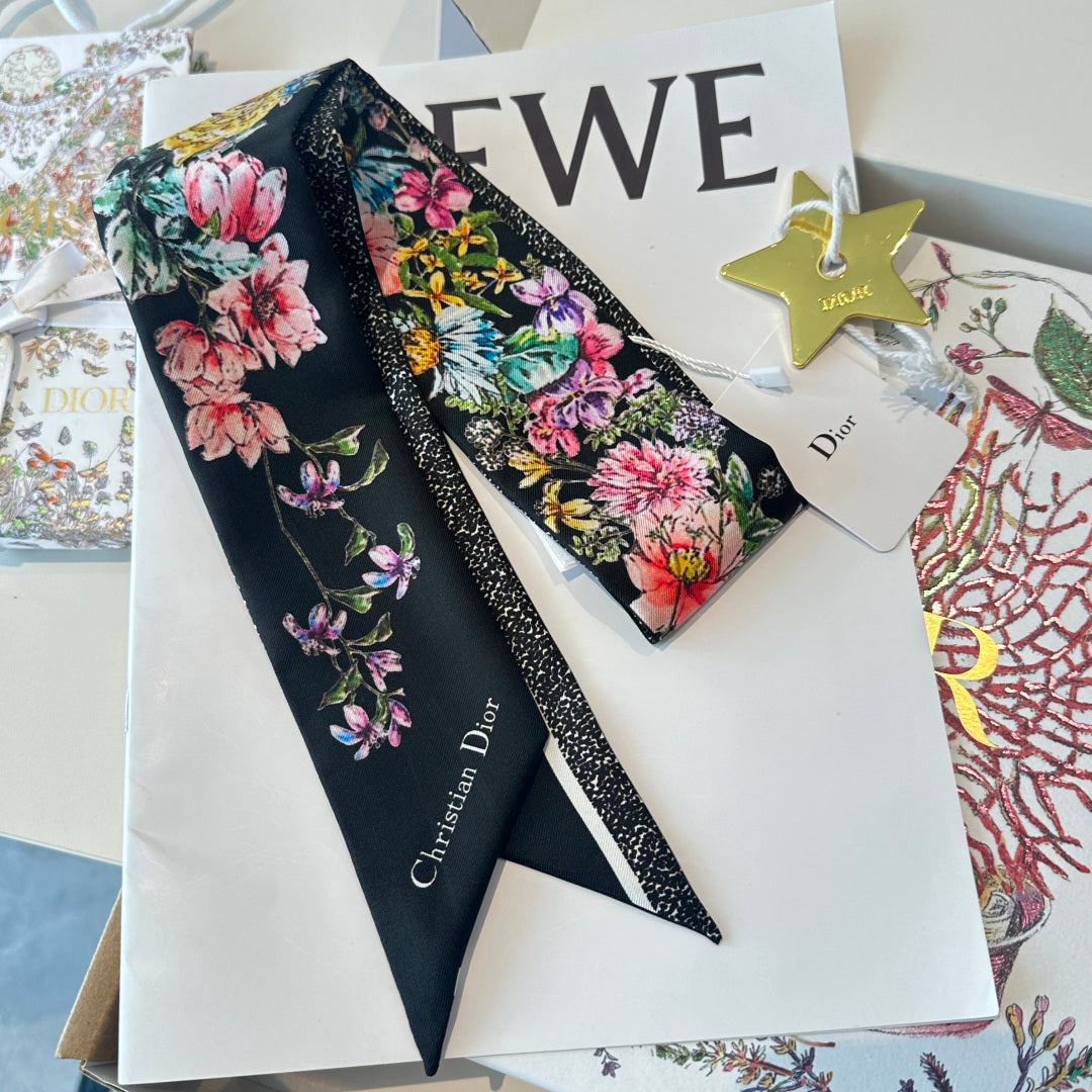 CD Twilly Mini Scarf 105cm Black Colorful Mulberry Silk 902532