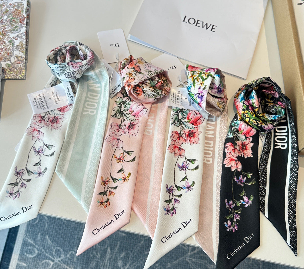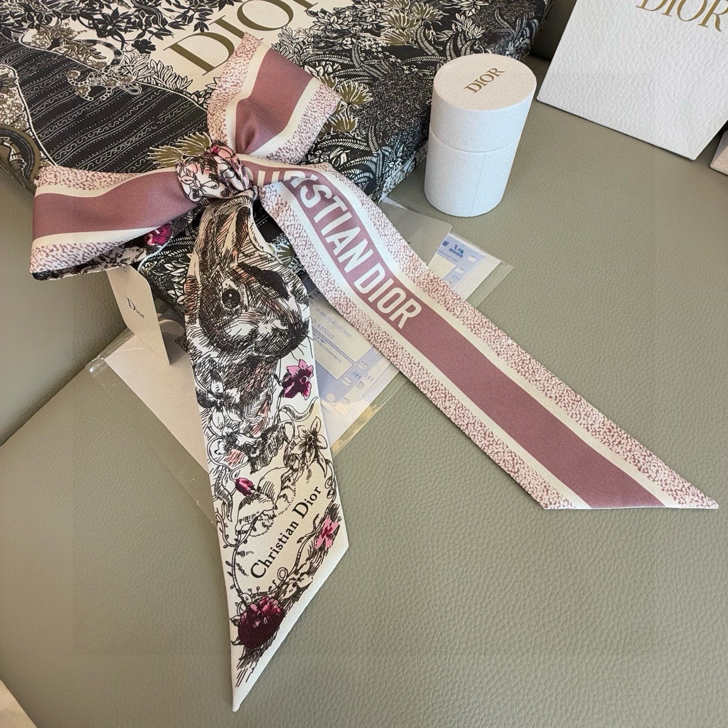 CD Twilly Mini Scarf 105cm Pink Black White Mulberry Silk 935252