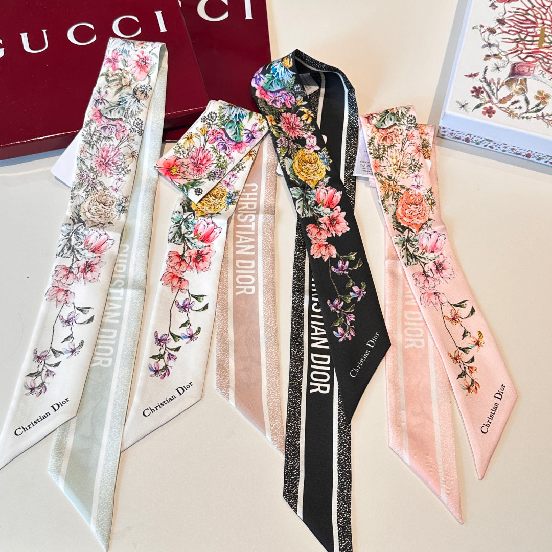 CD Twilly Mini Scarf 105cm Gray Colorful Mulberry Silk 945718