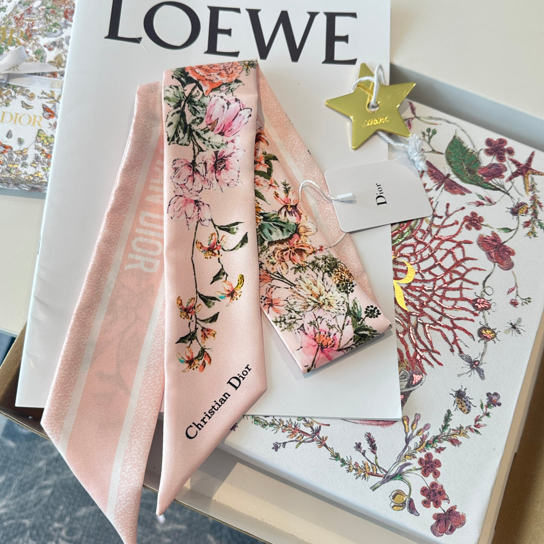 CD Twilly Mini Scarf 105cm Light Pink Colorful Mulberry Silk 945717