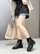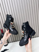 CC Combat Boots 50mm Black Glossy Calfskin And Lycra Fabric 944549