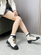 CC Combat Boots 50mm White Black Calfskin And Lycra Fabric 944550