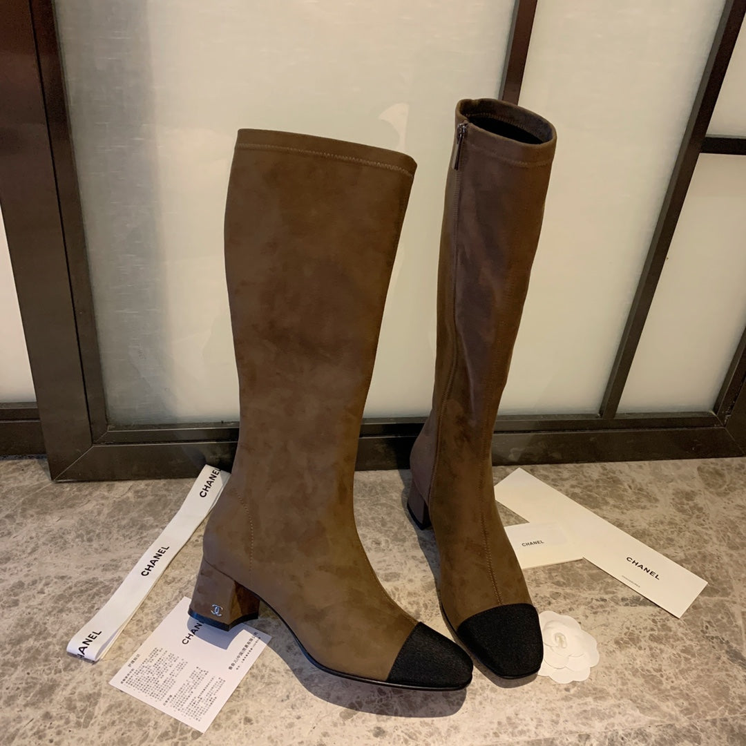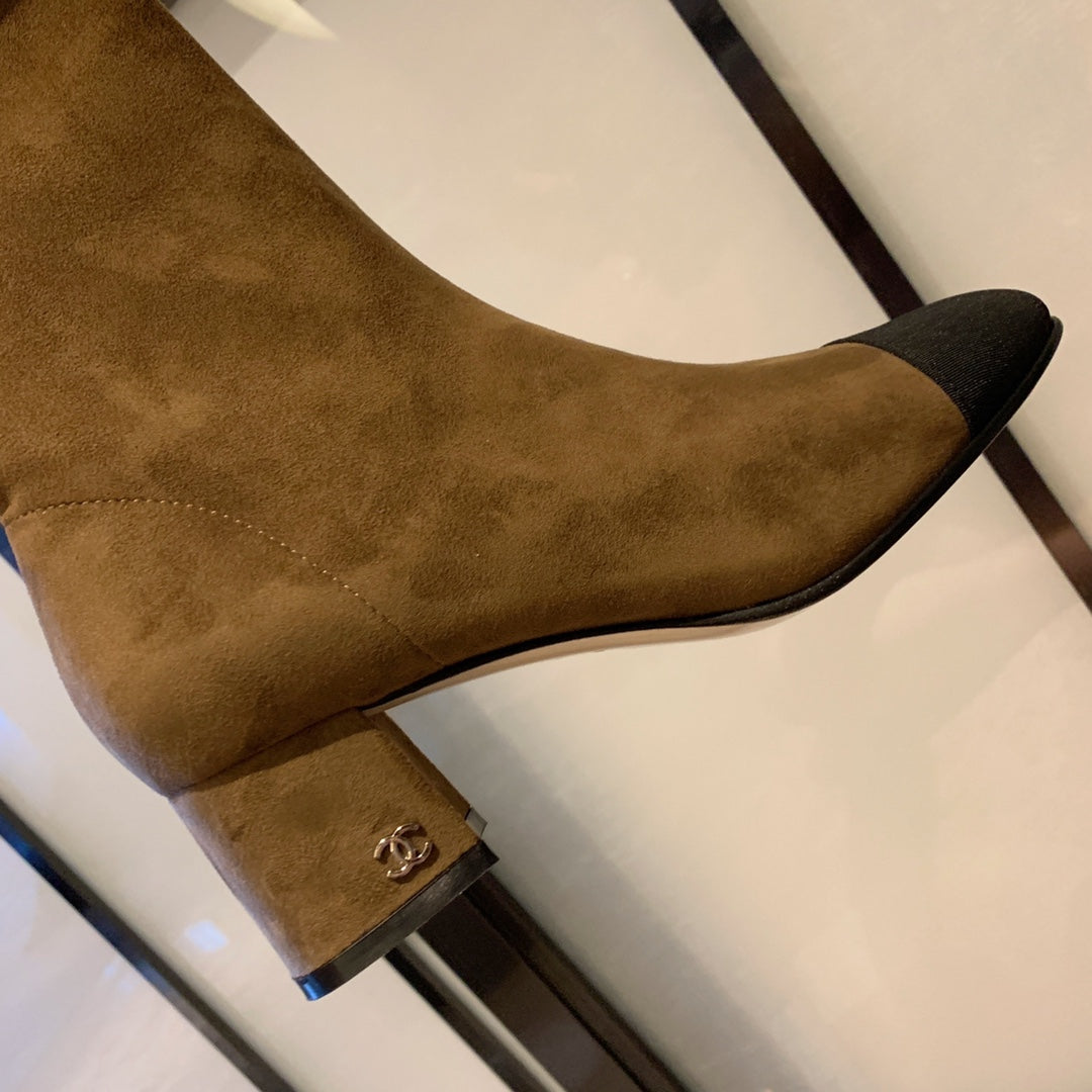 CC High Boots 50mm In Coffee Black Suede And Lycra Fabric 940062