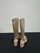 CC High Boots Beige Bow Tie Cowhide