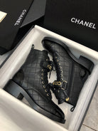 CC Short Boots 45mm In Black Quilted Lambskin And Glossy Cowhide 950042