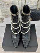 CC Short Boots 80mm Glossy Black Wrinkled Quilted Calfskin