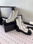 CC Short Boots In White Mix Black Logo Print Lambskin 938060