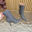 Gucci 2025 Thick-heeled Square-toed Ankle Boots Blue Sheepskin Fabric 498065