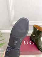 Gucci 25𝐬𝐬 horsebit ankle boots dark olive green patent calfskin