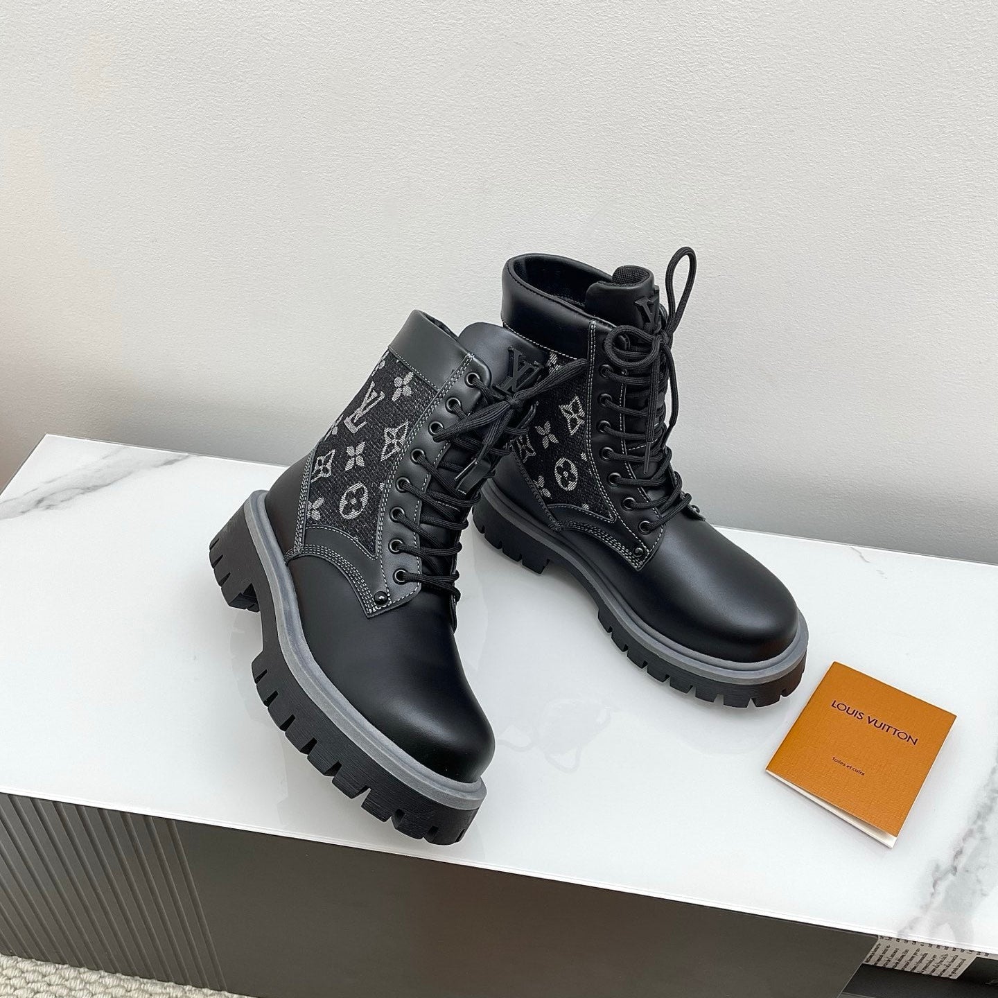 LV 25 Ankle Boots Black Monogram Cowhide Denim 576226