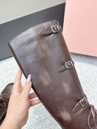 MIU MIU Cowboy High Boots Dark Brown Sheepskin 461844
