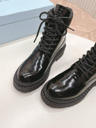 PRA LACE-UP BOOTS GLOSSY BLACK CALFSKIN