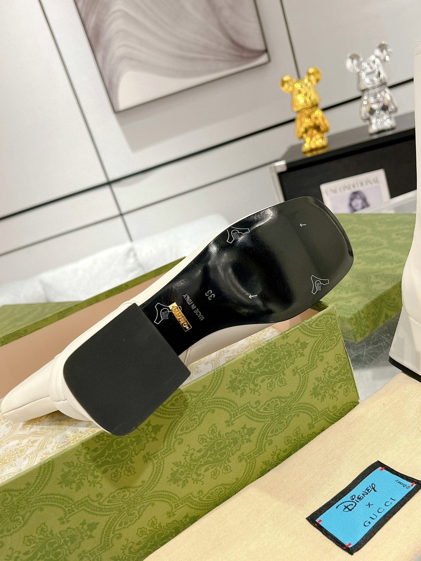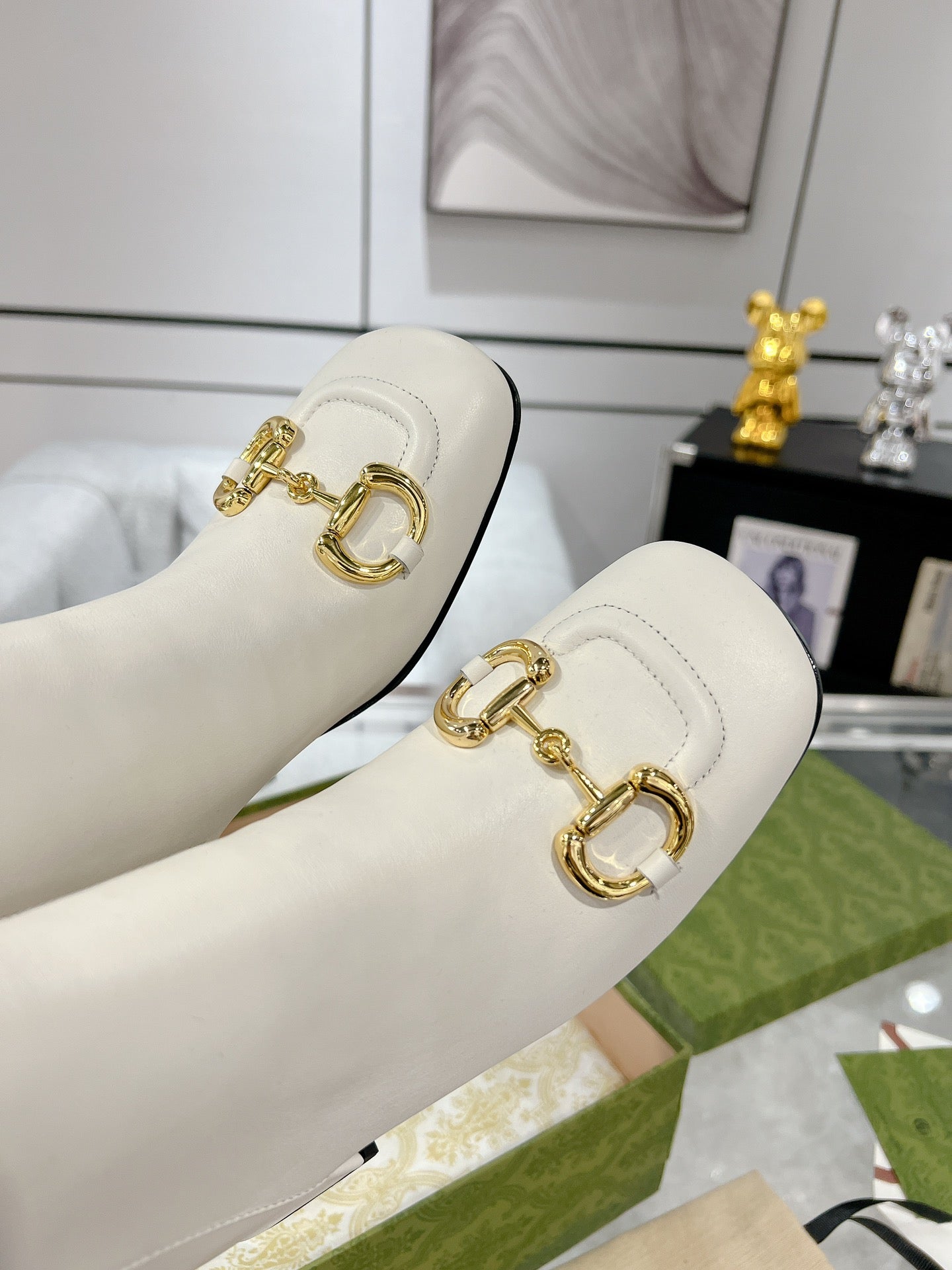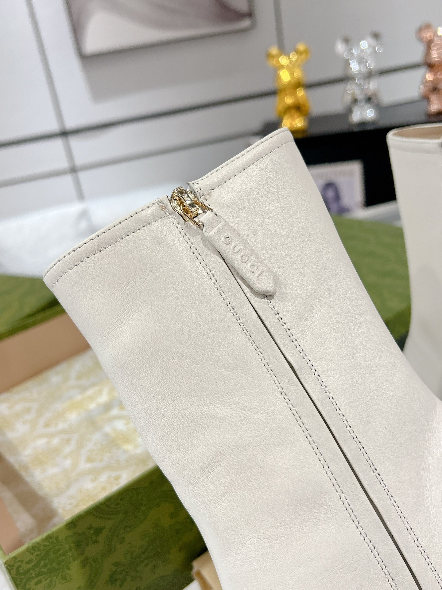 Gucci Horsebit Square Toe Mid-heeled Ankle High Boots White Cowhide 490538