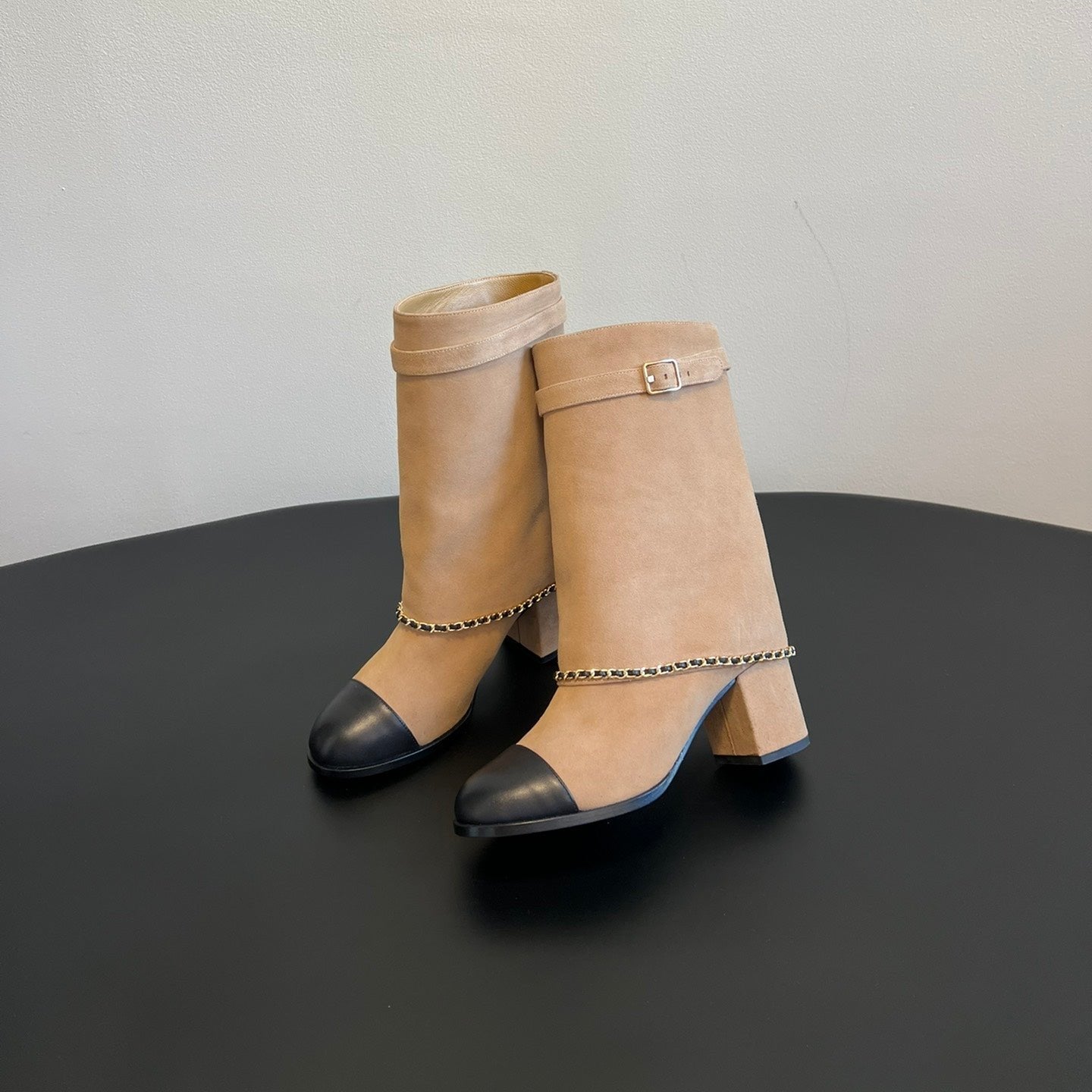 CC Hight Boots Dark Beige With Chain Suede And Cowhide 944969
