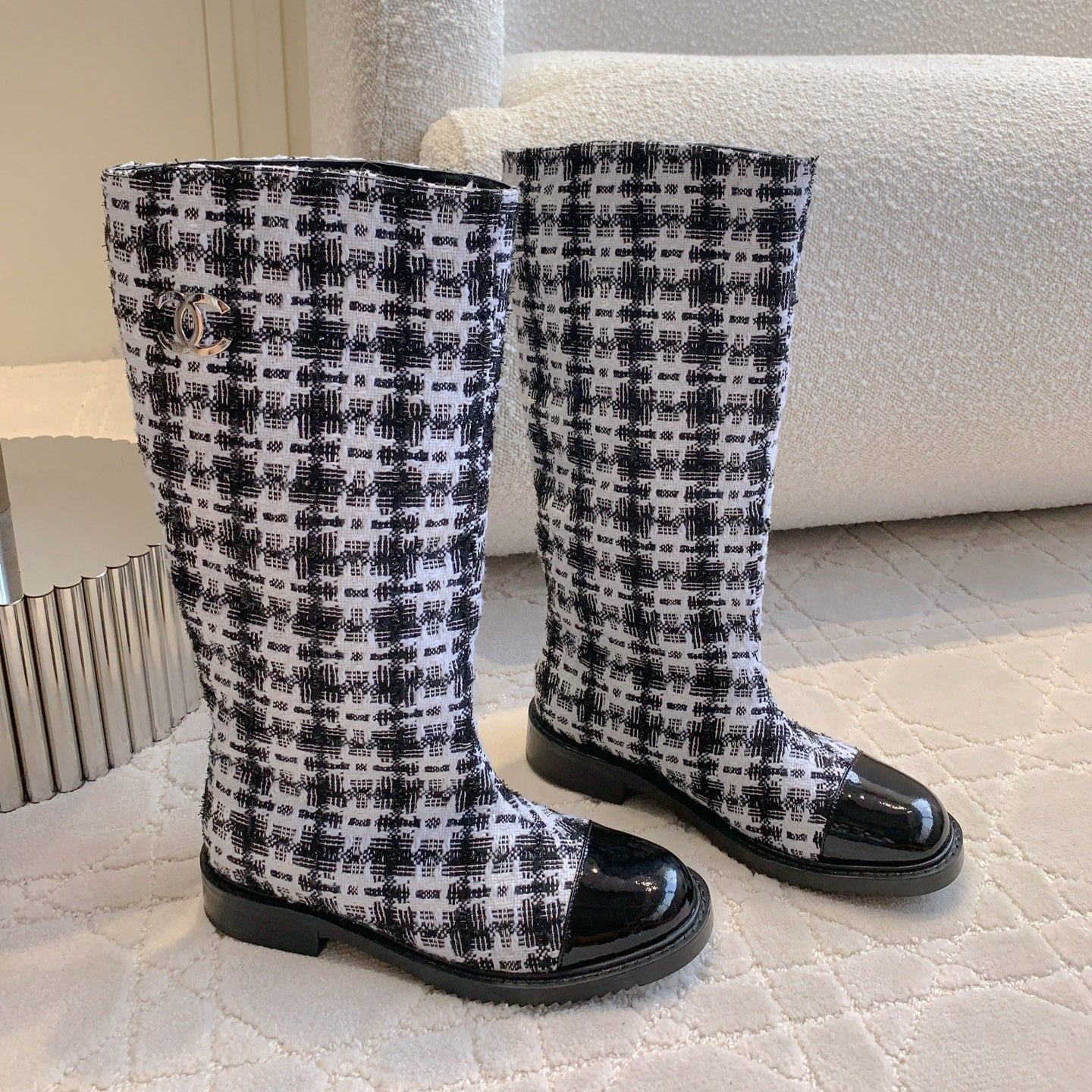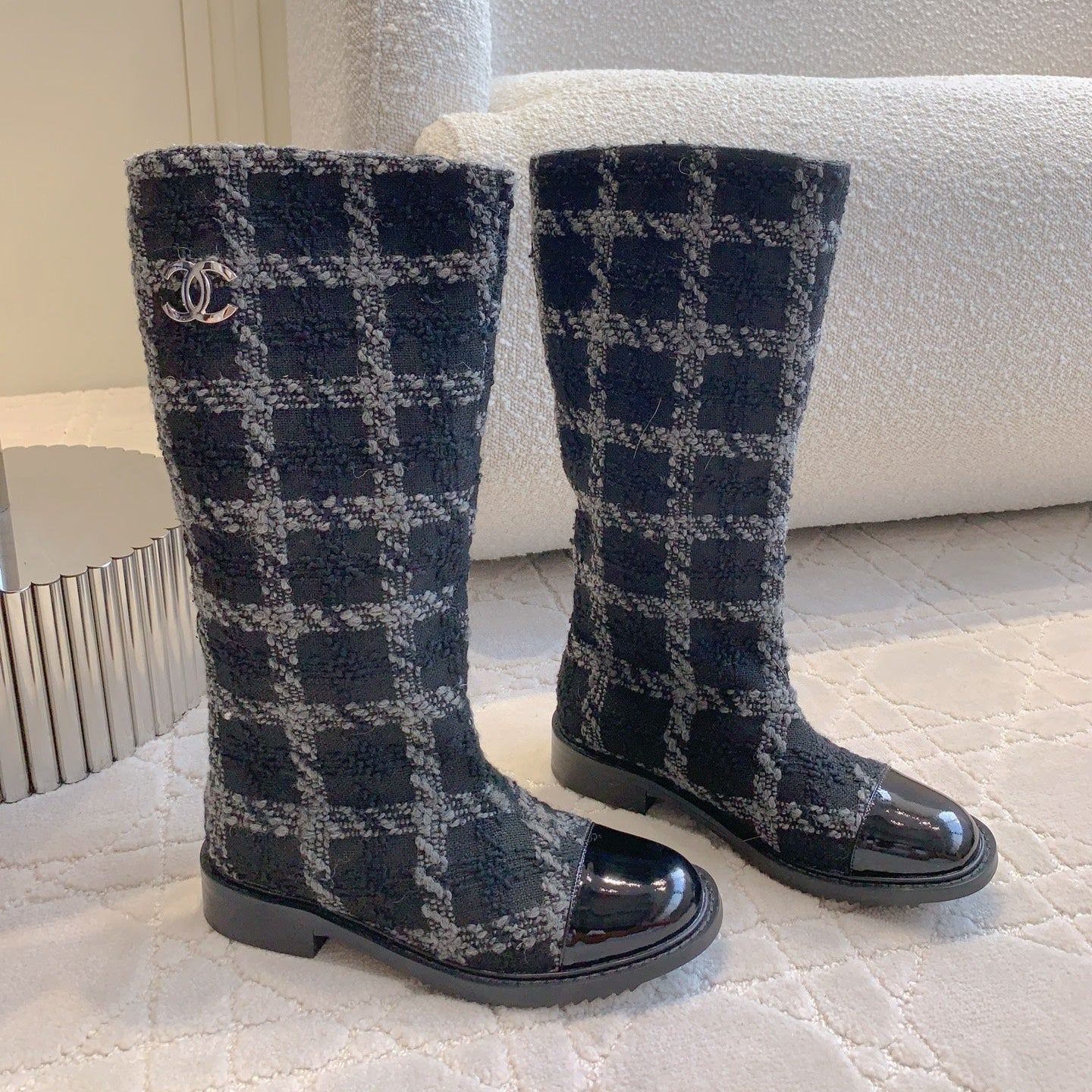 CC High Boots In Black Tweed Mix Curly Wool 145500