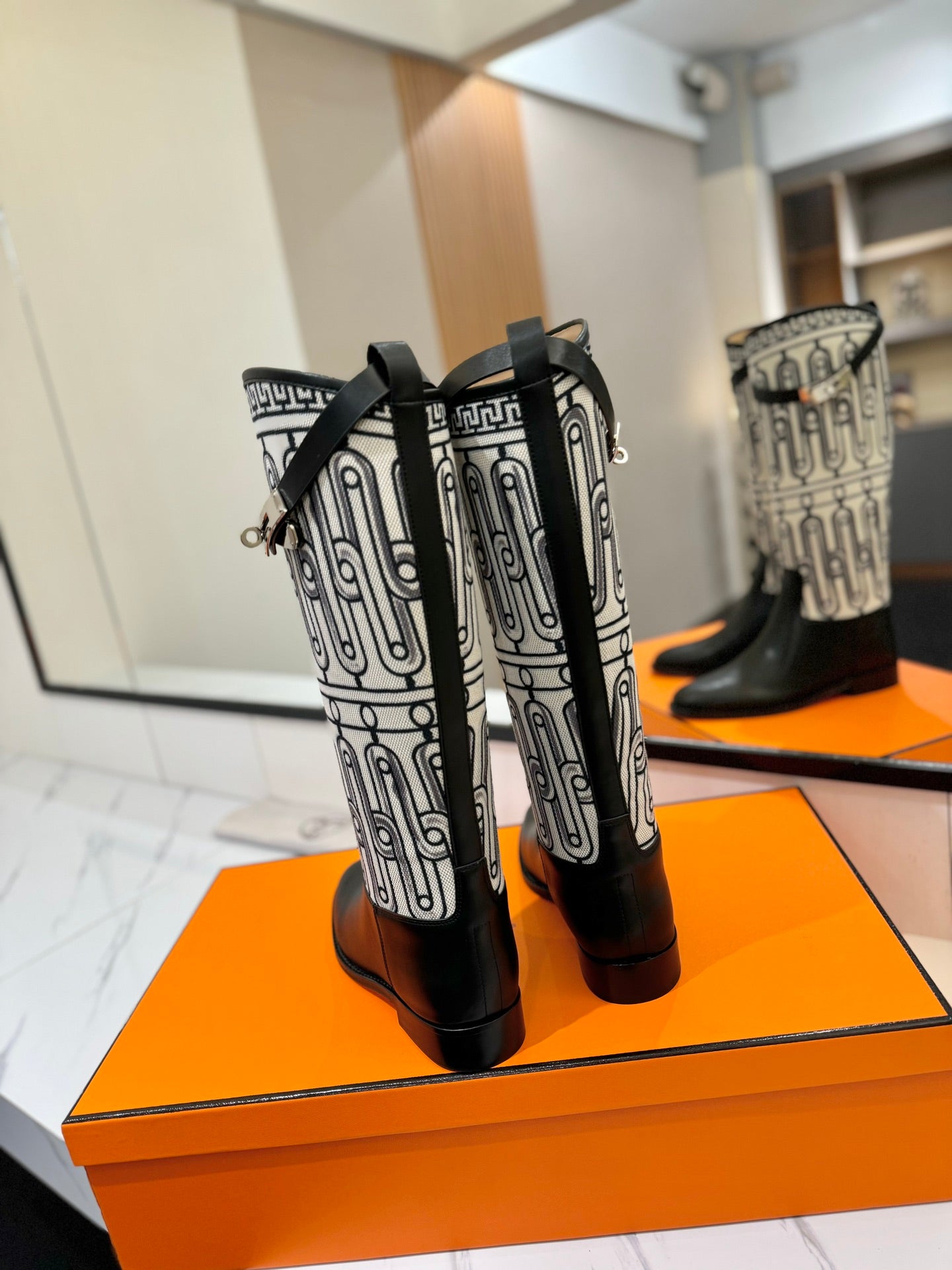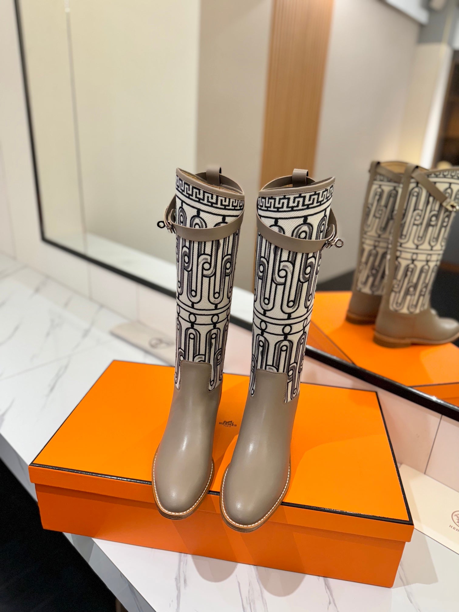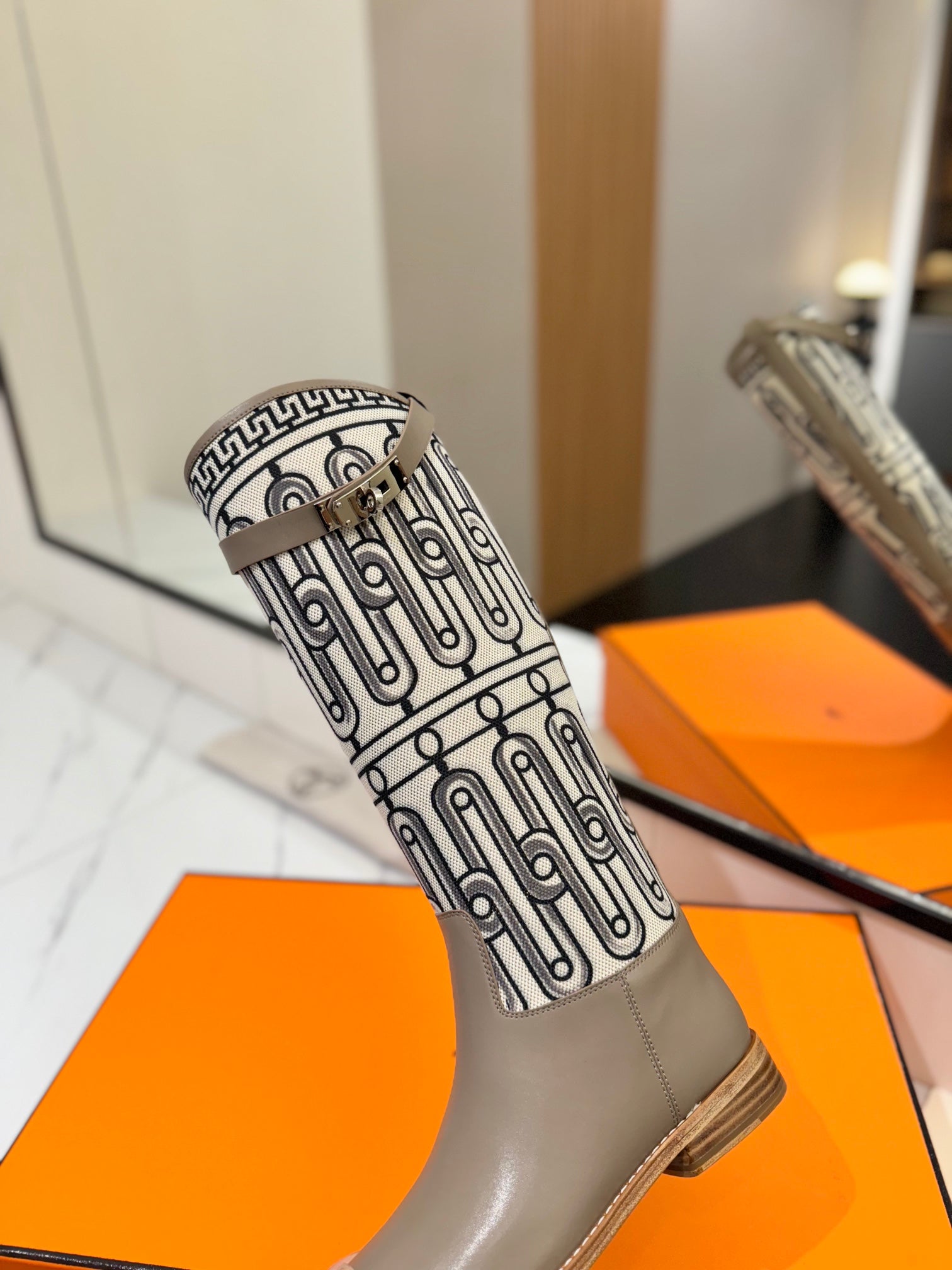 HM Jumping Boot 20MM Grey Beige Printed Pattern Cowhide 992360