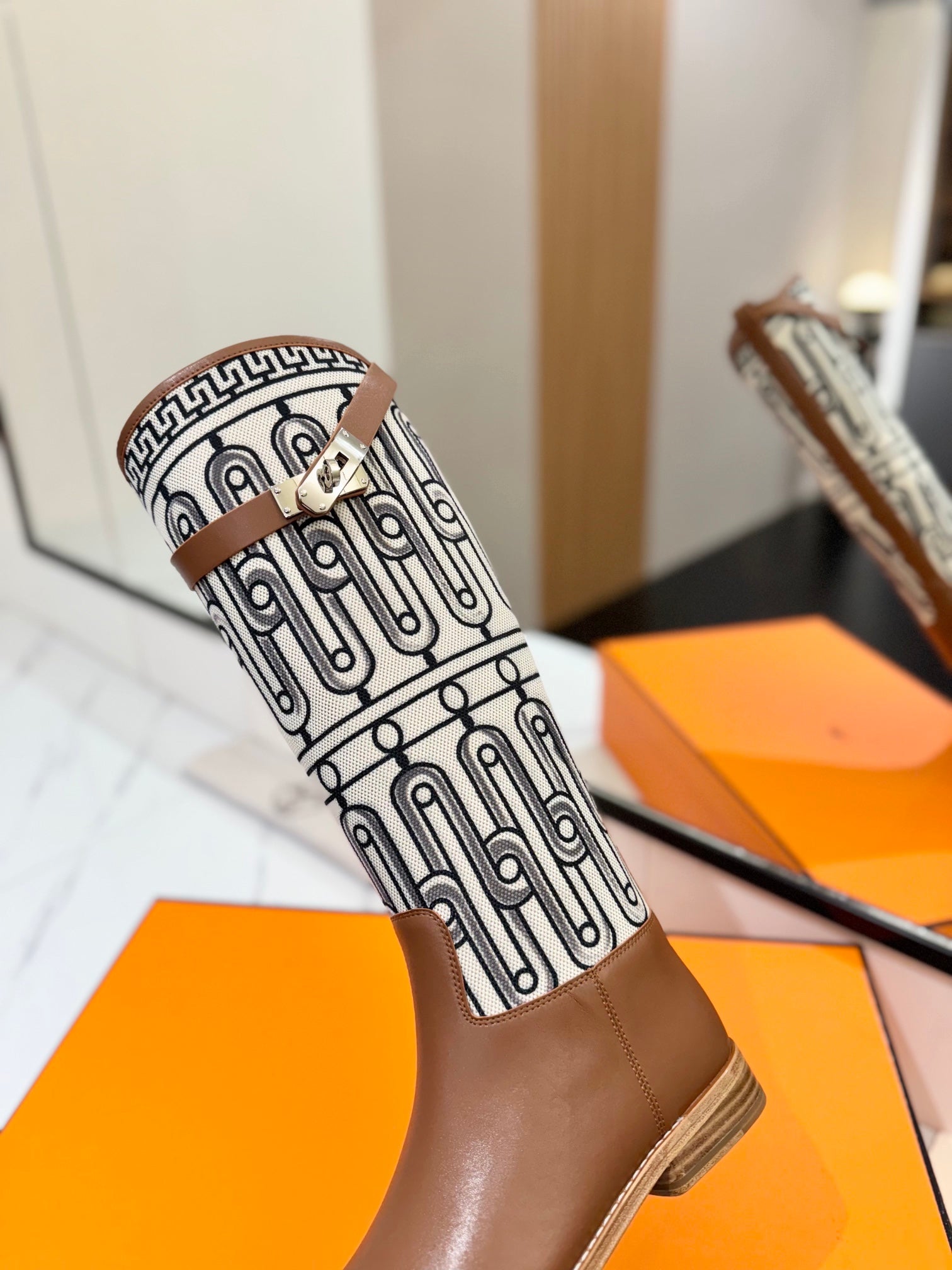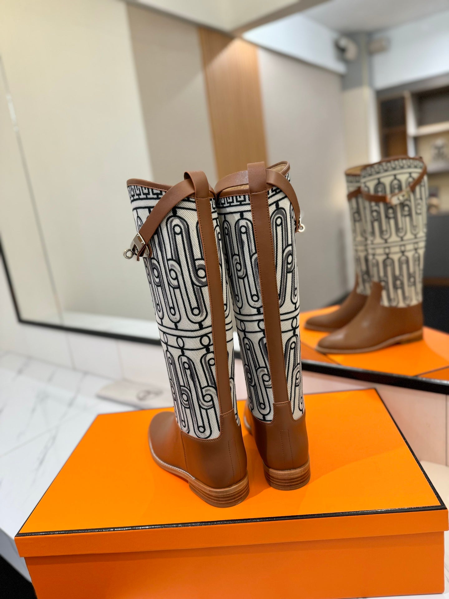 HM Jumping Boot 20MM Brown Printed Pattern Cowhide 992356