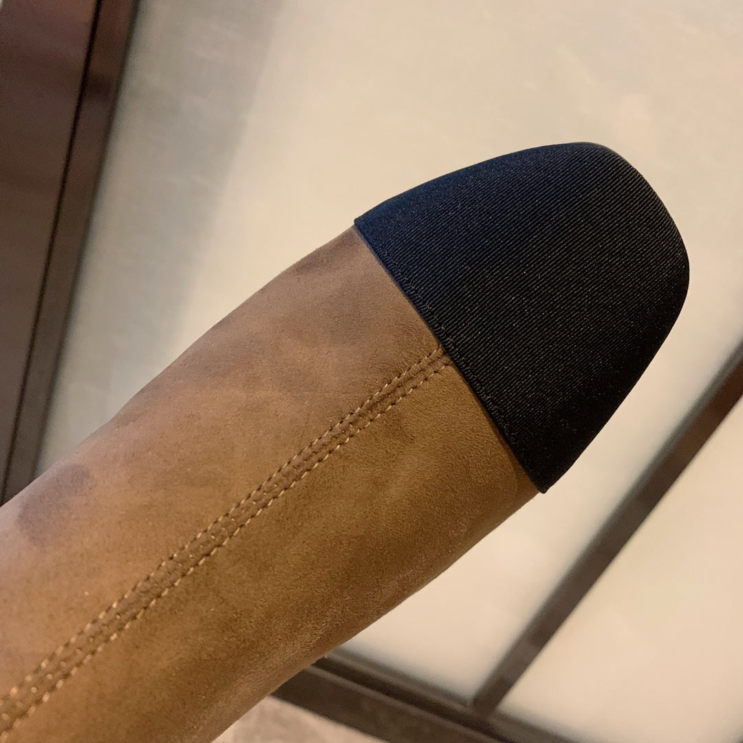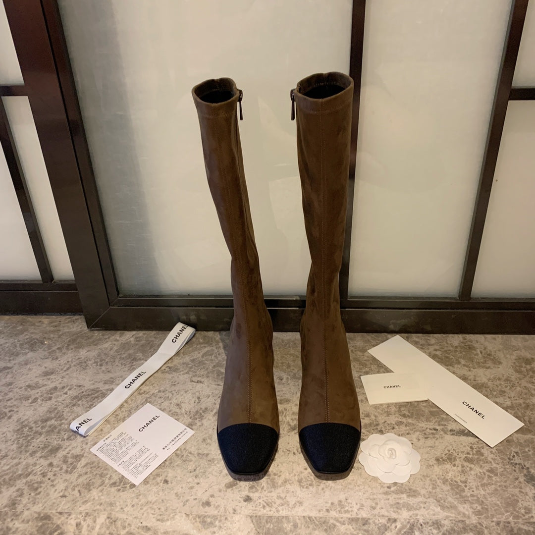 CC High Boots 50mm In Coffee Black Suede And Lycra Fabric 940062
