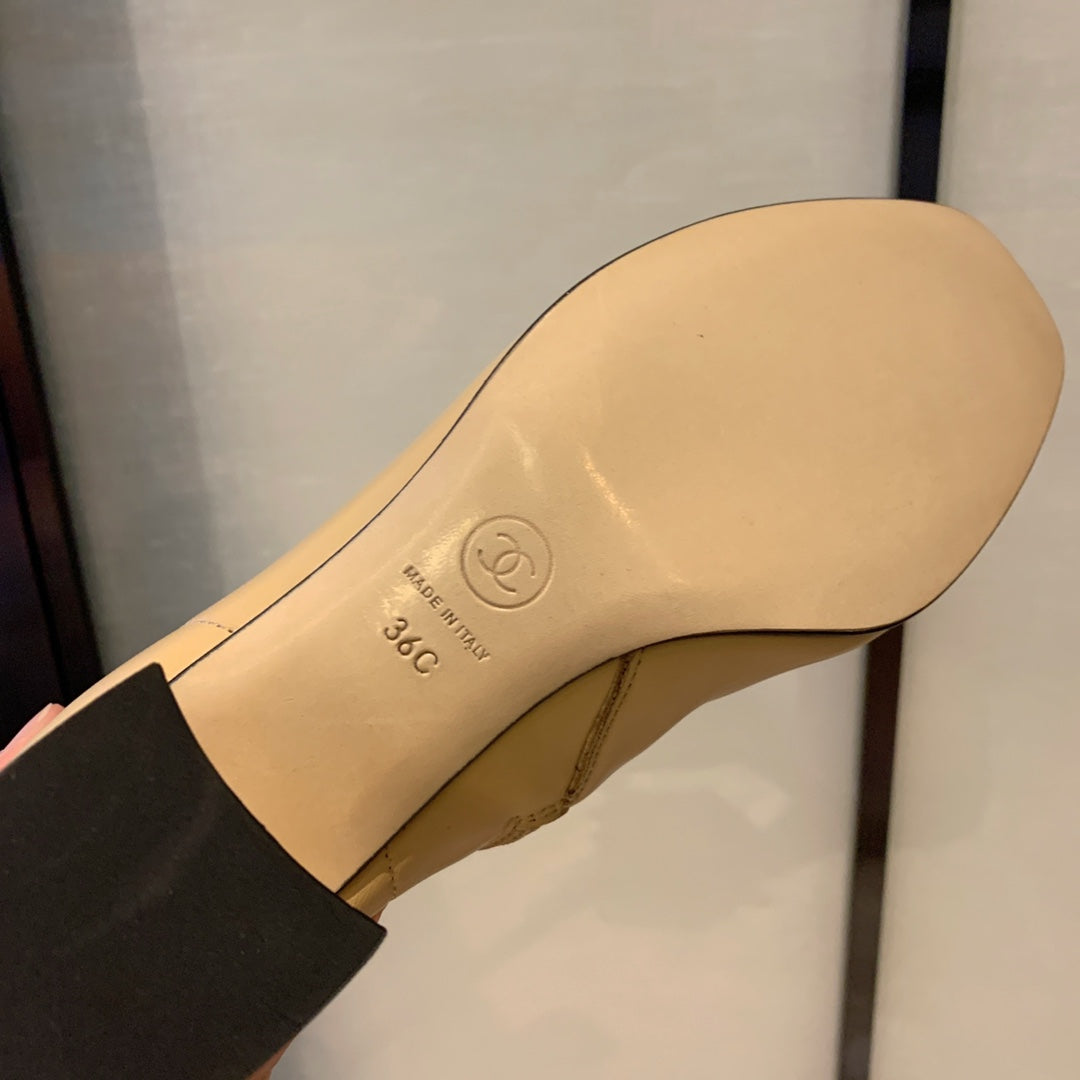 CC High Boots Beige Bow Tie Cowhide