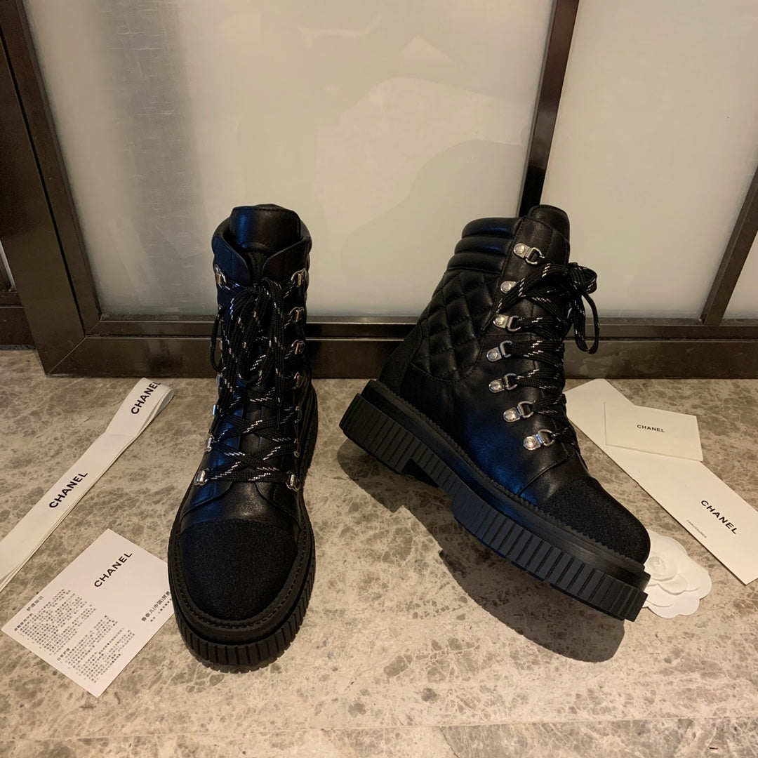 CC Ankle Boots Black Quilted Cowhide