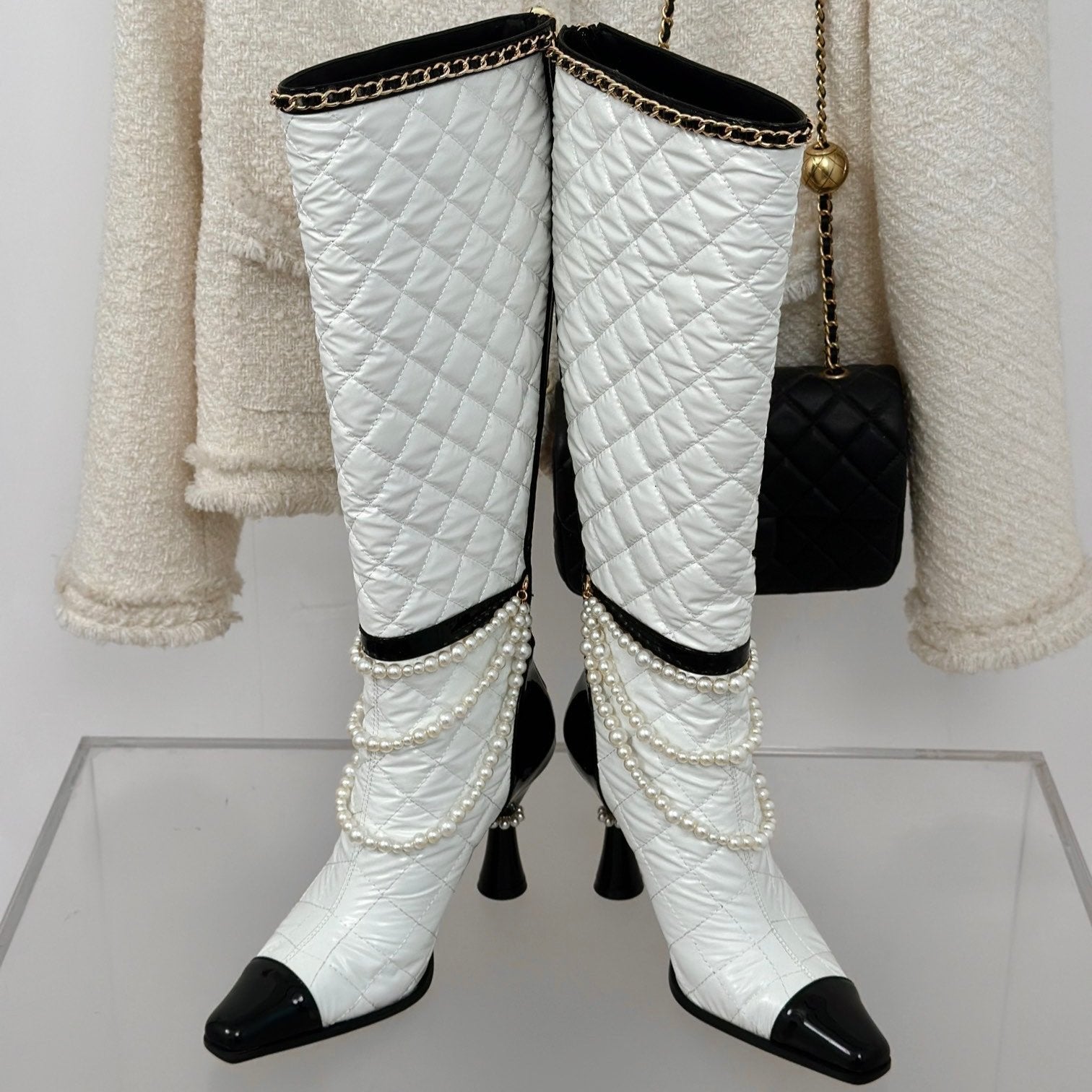 CC High Boots 50mm White Quilted Calfskin