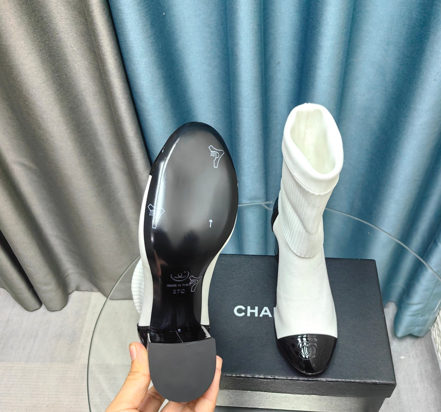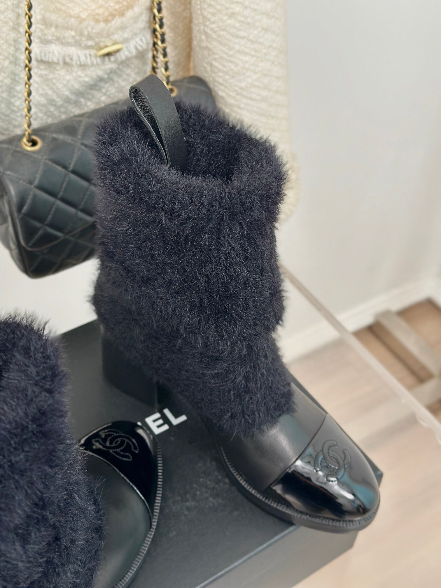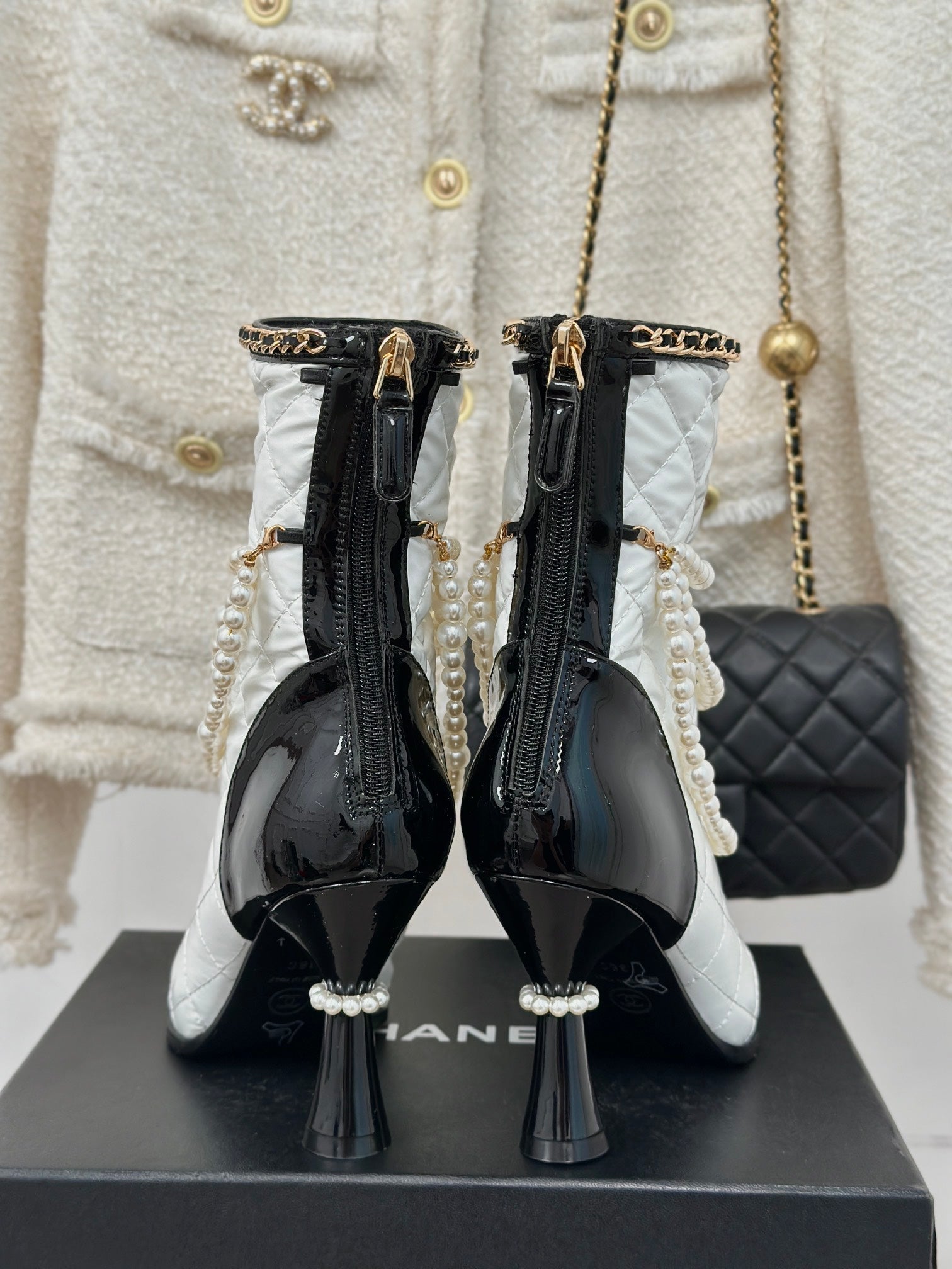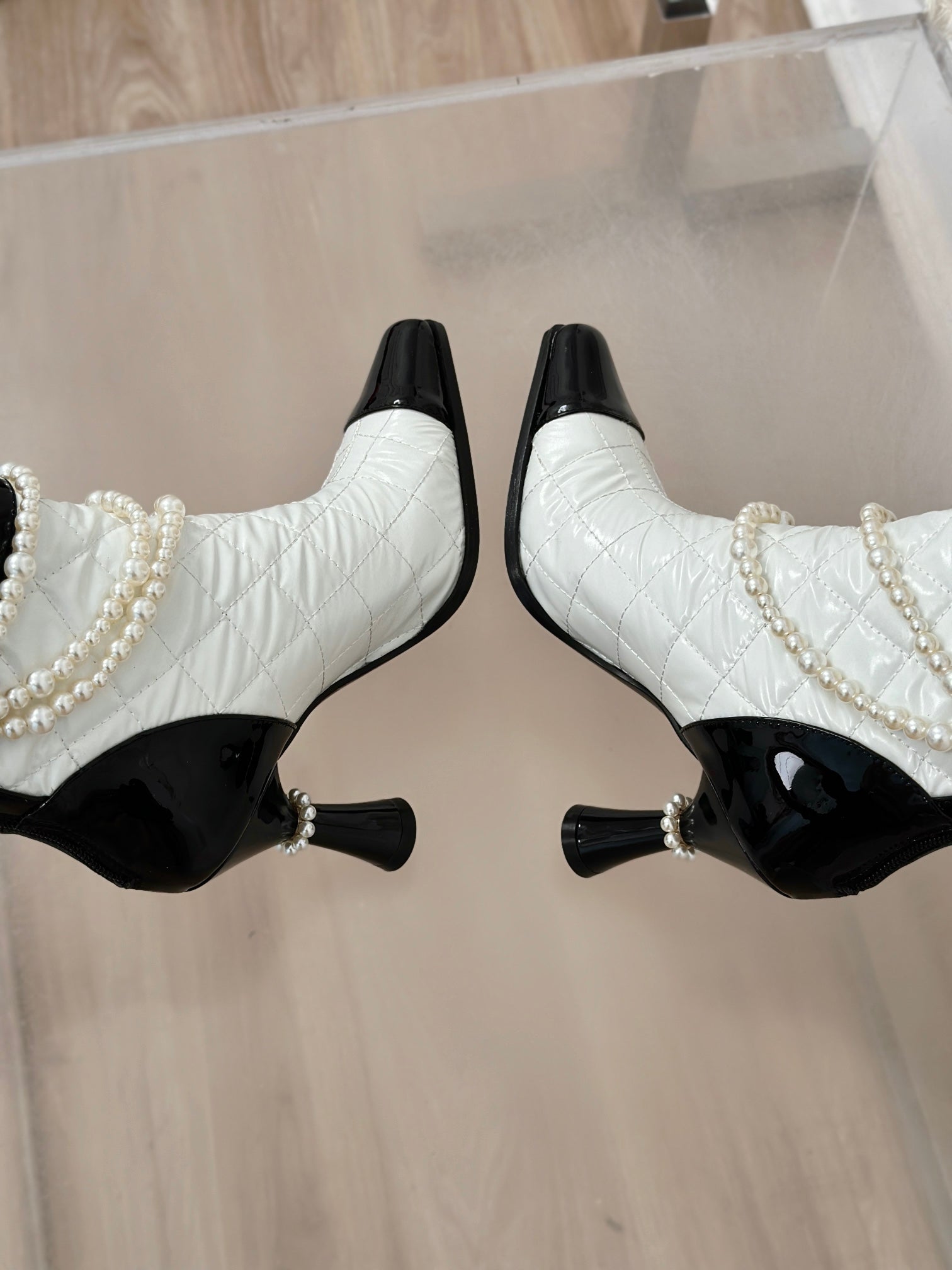 CC Short Boots 55mm White Black Wool Mix Glossy Cowhide 938067