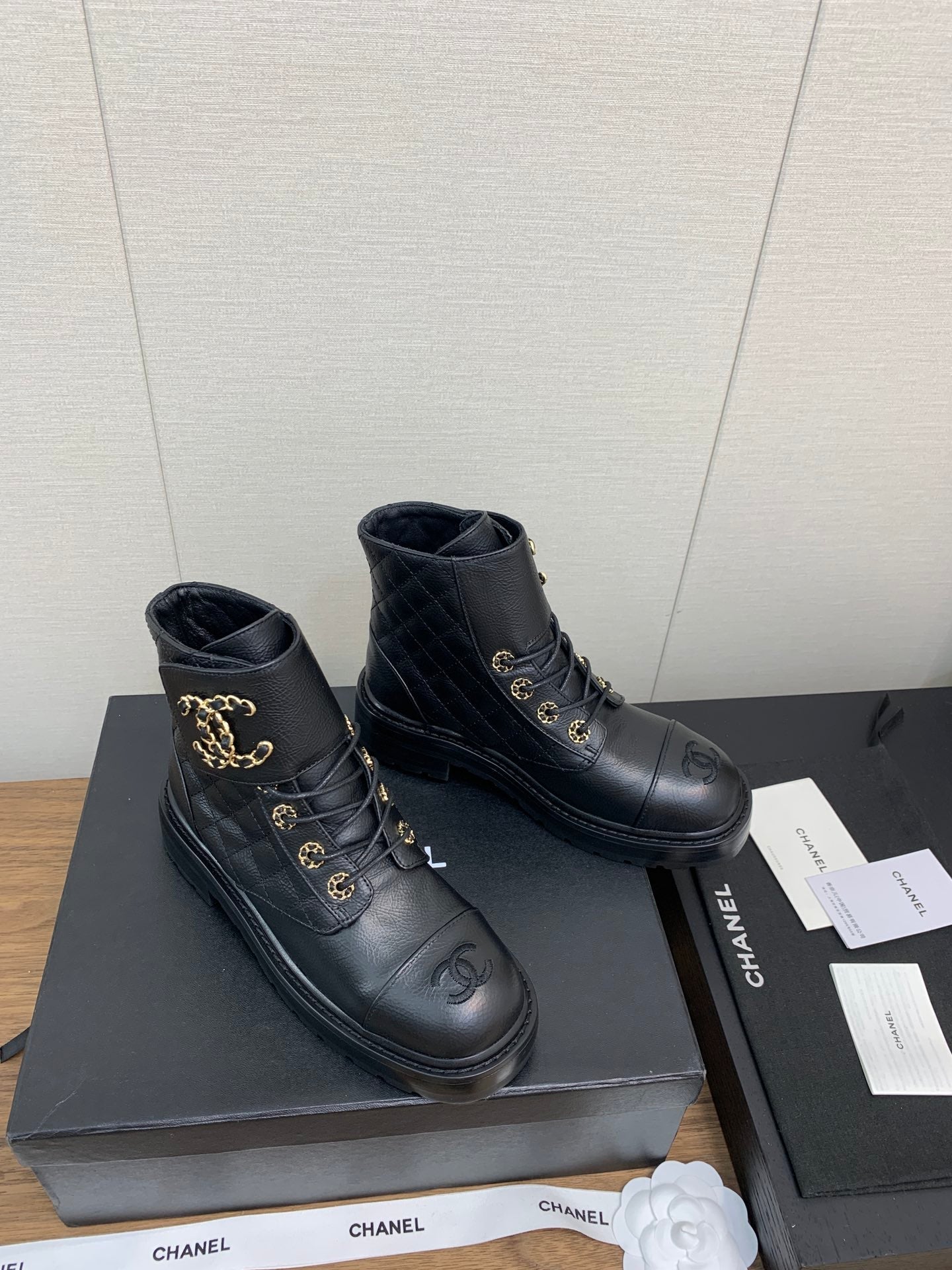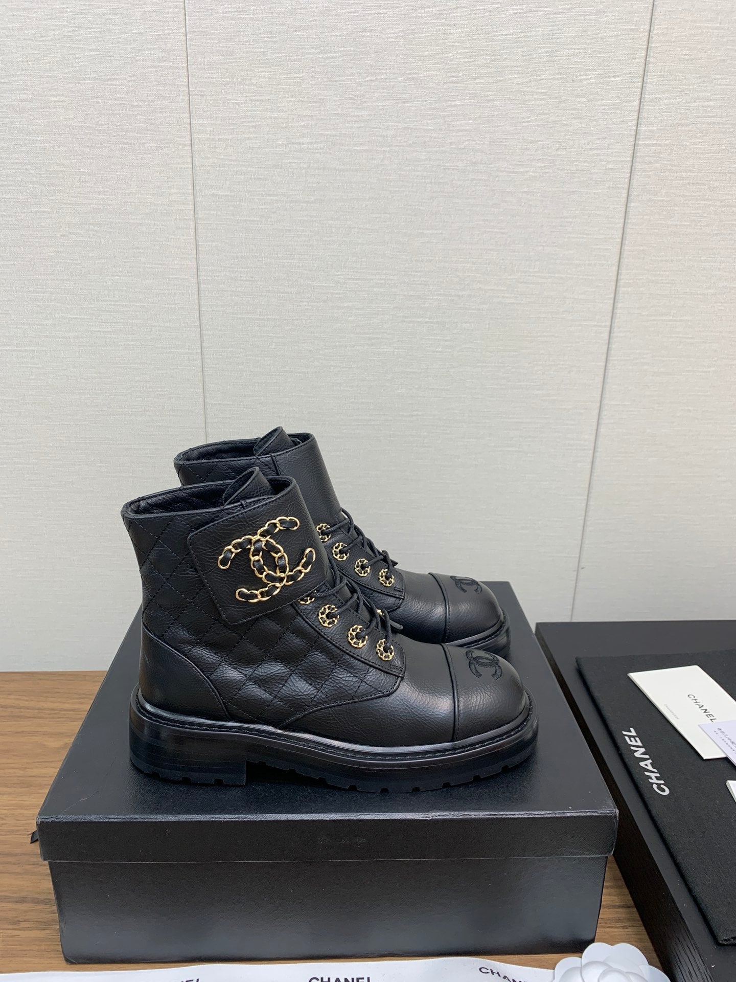 CC Ankle Boots Black Quilted Cowhide