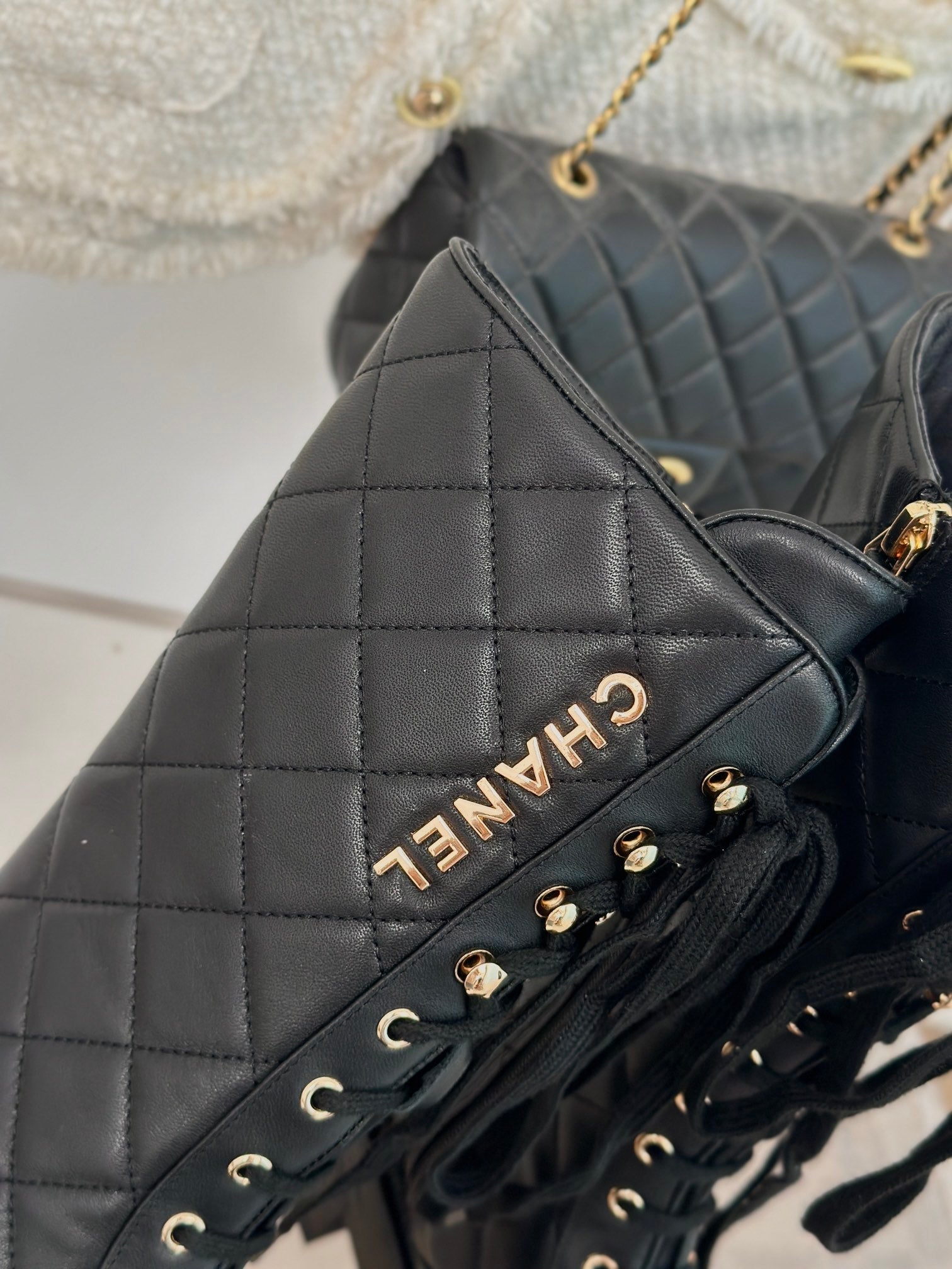 CC Ankle Boots White Tweed Fabric And Lambskin