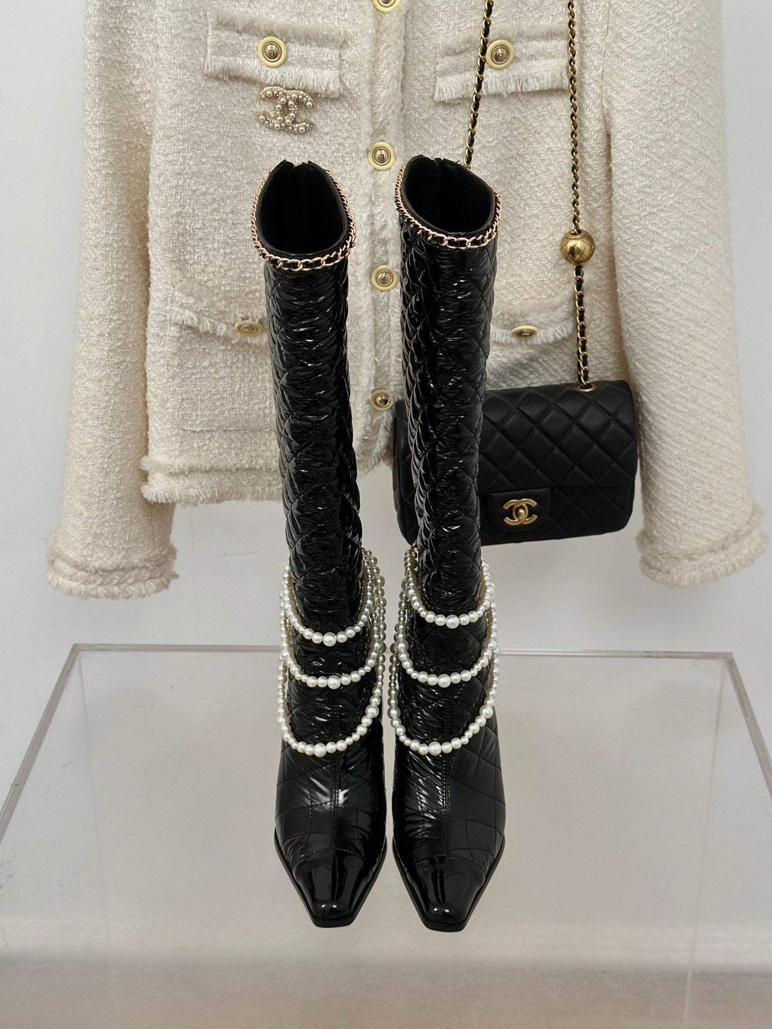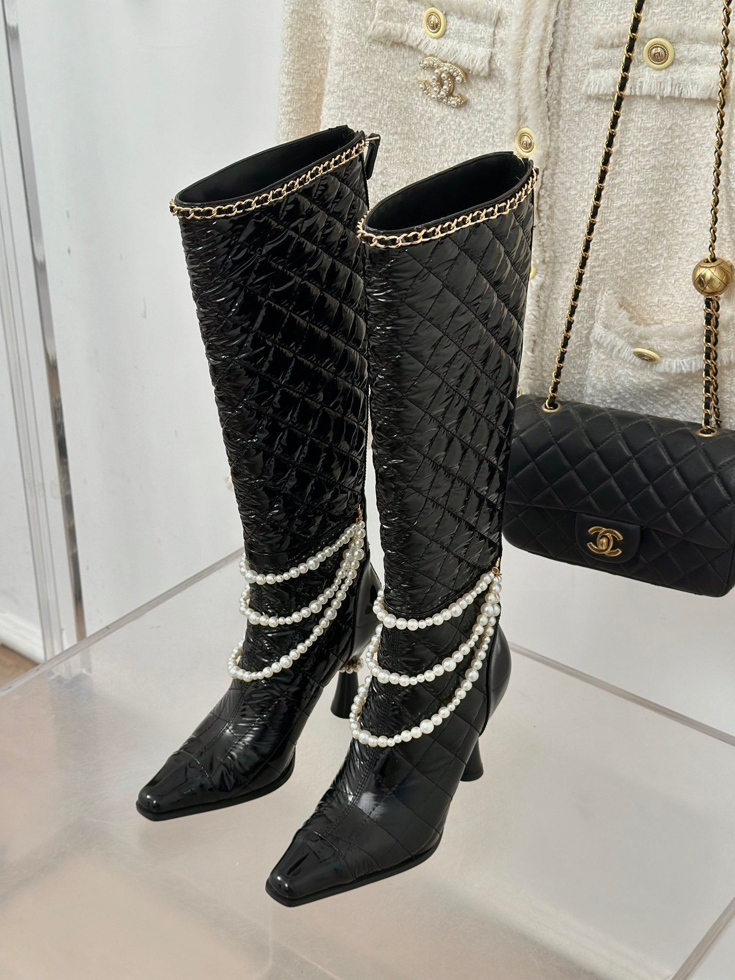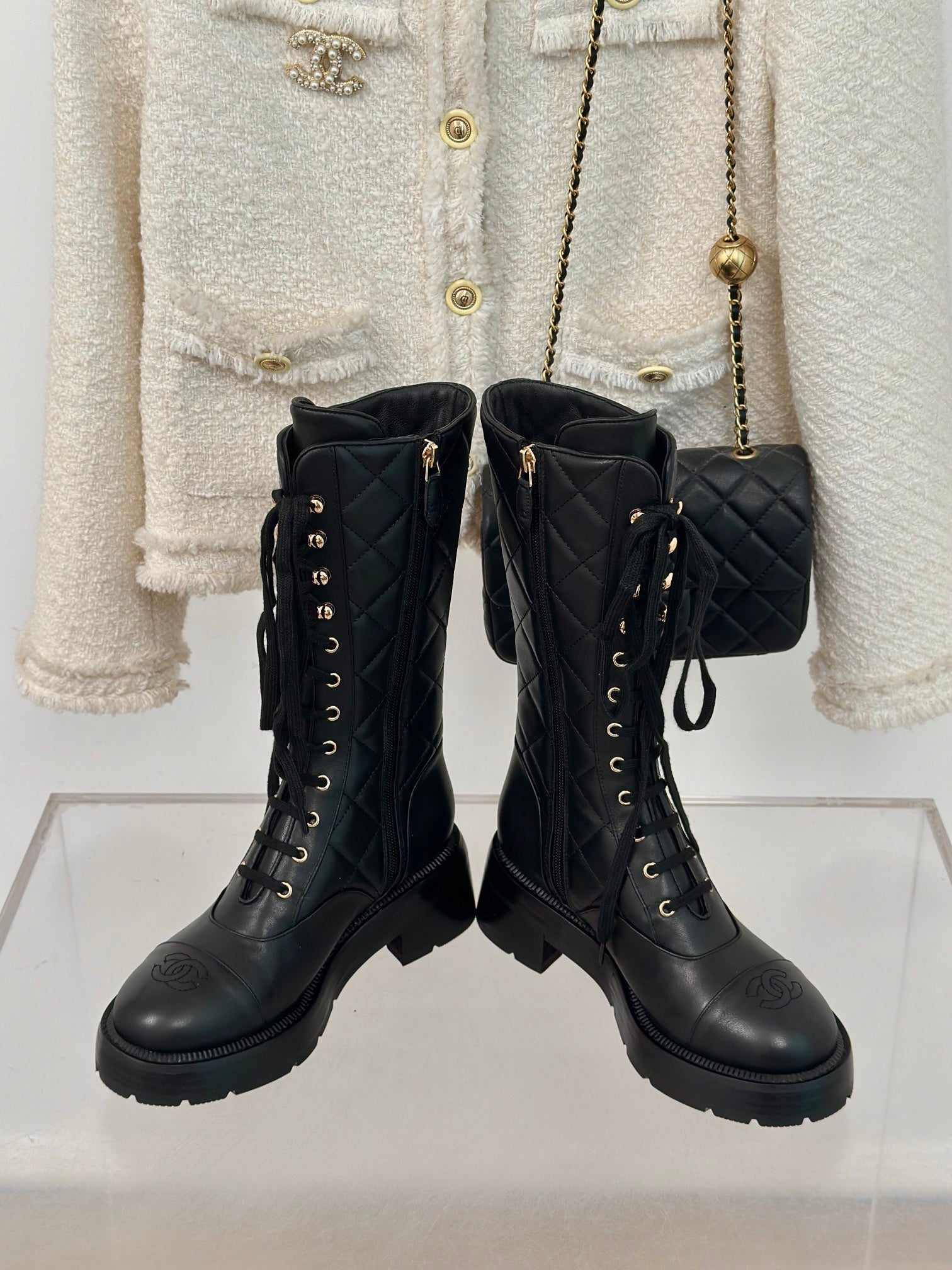 CC High Boots 50mm Black Quilted Calfskin