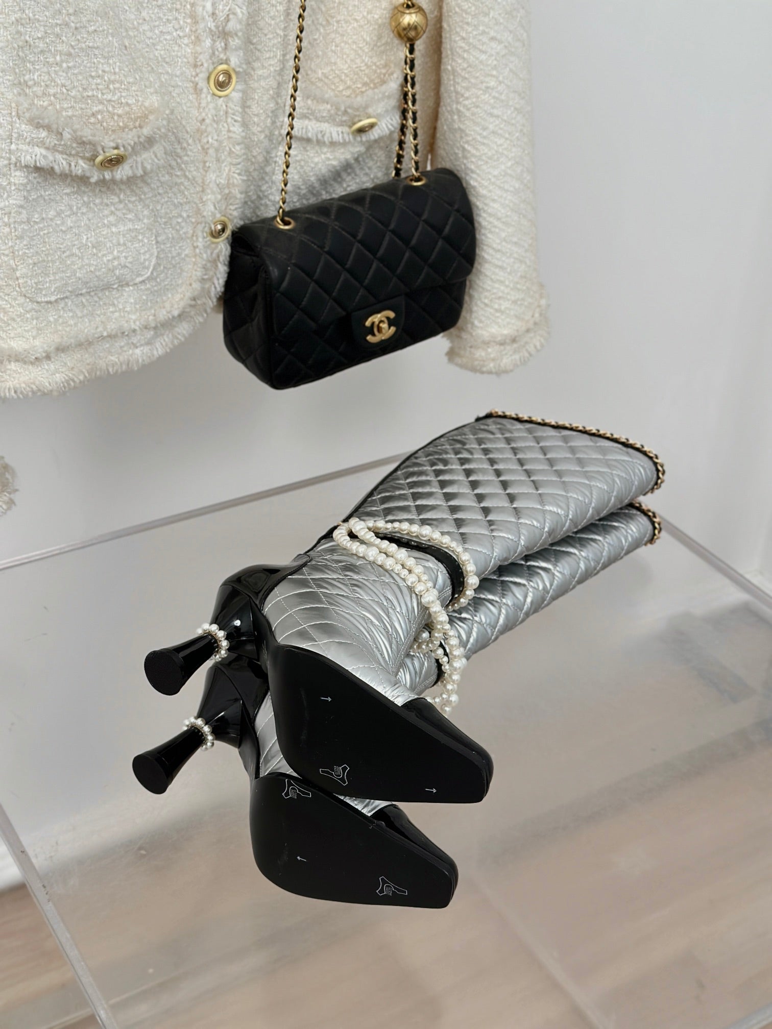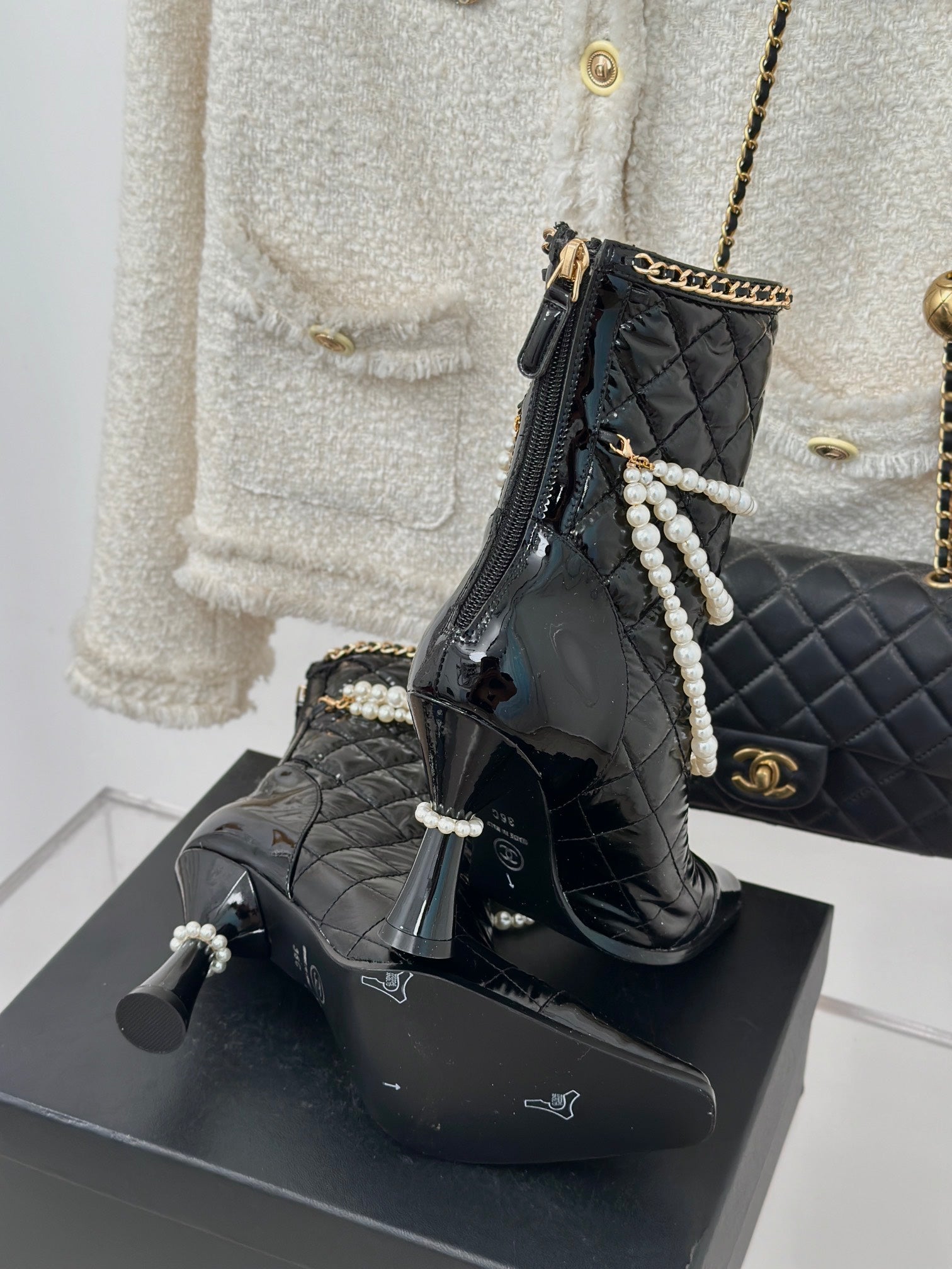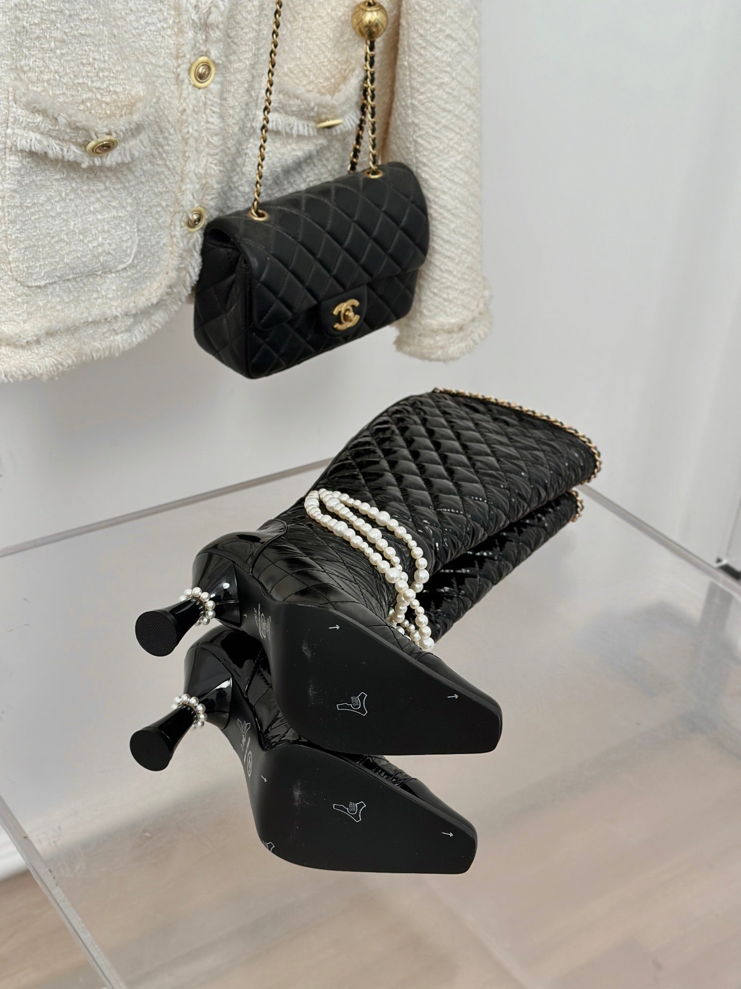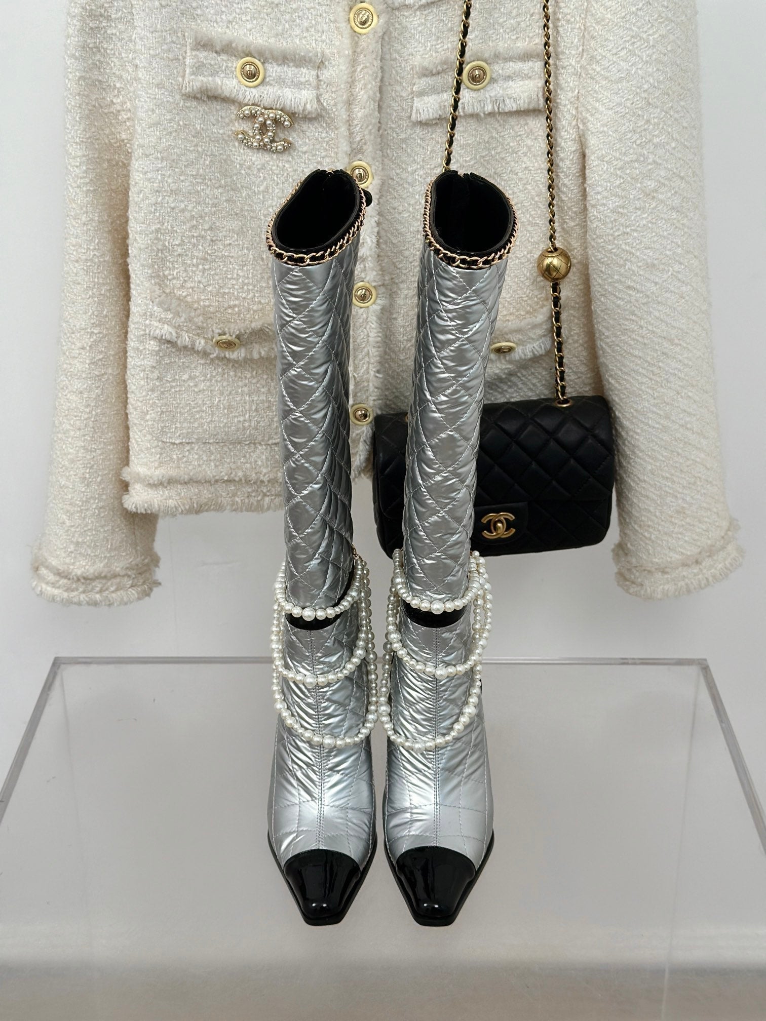 CC High Boots 50mm Black Quilted Calfskin