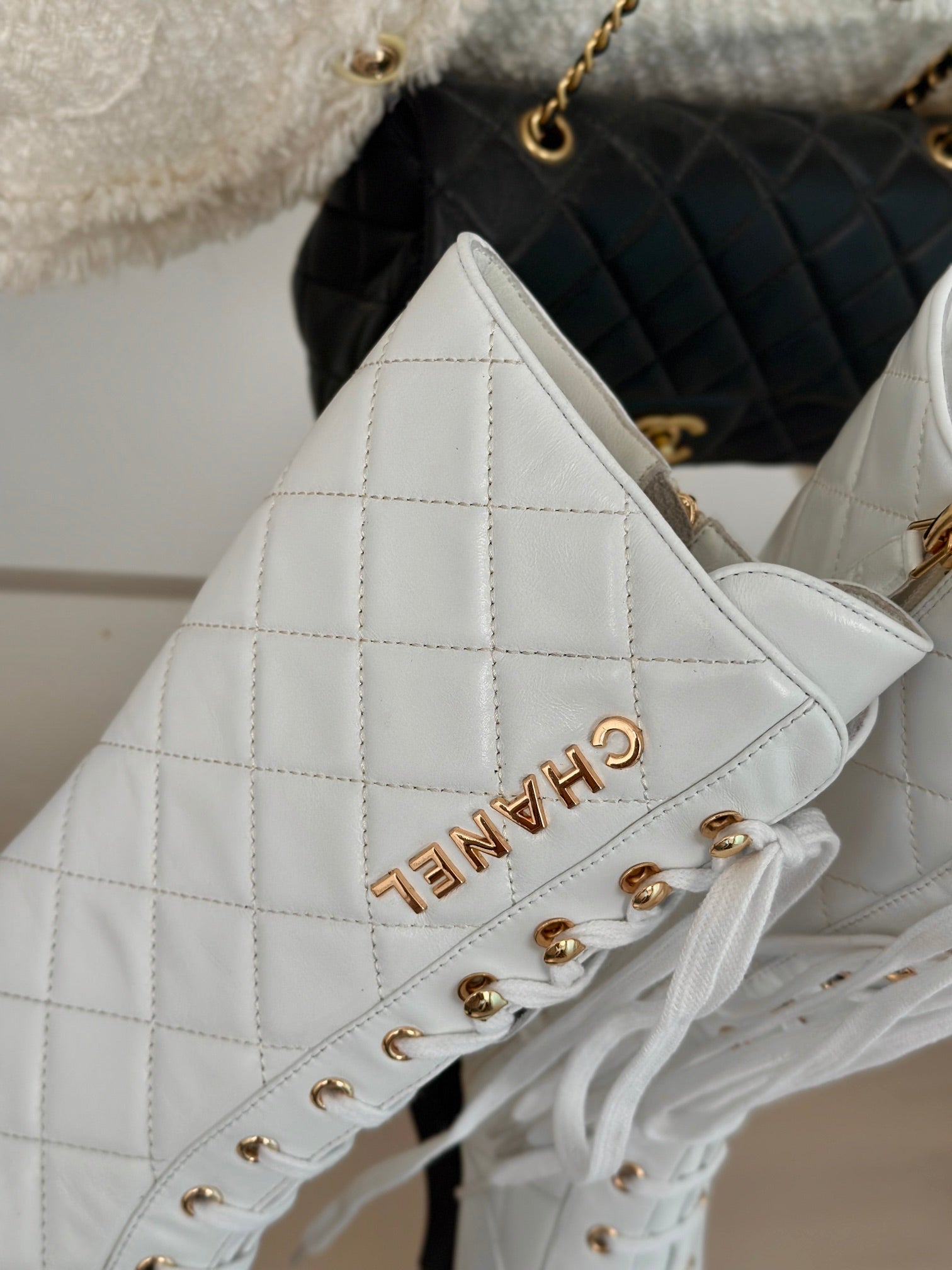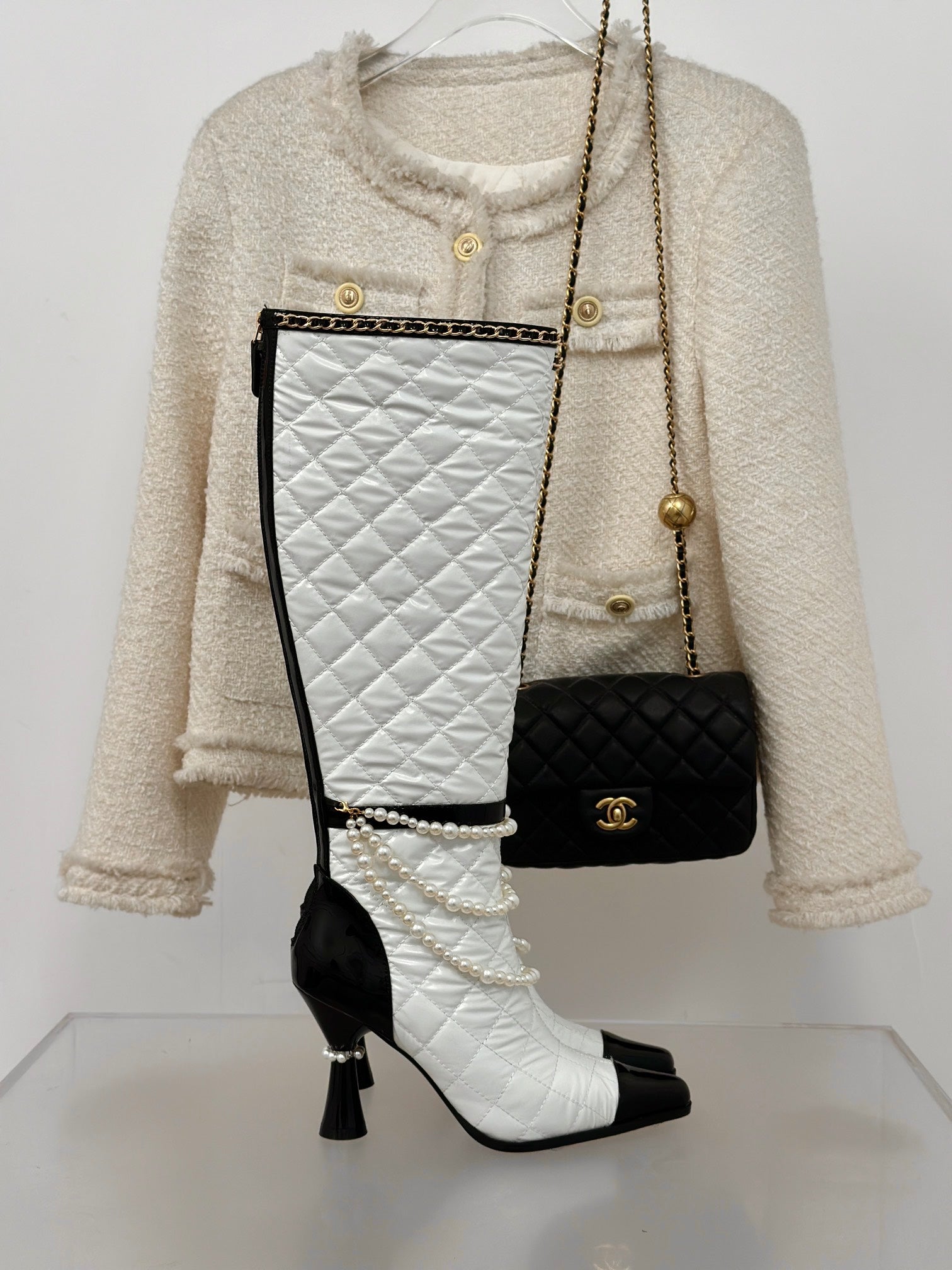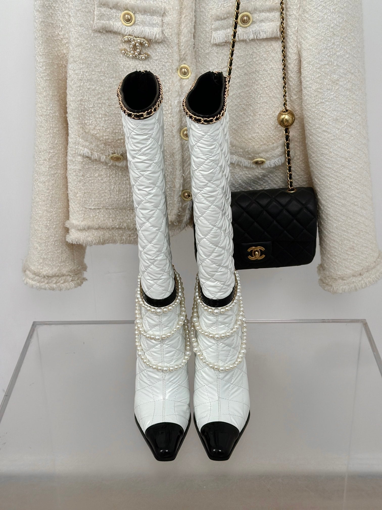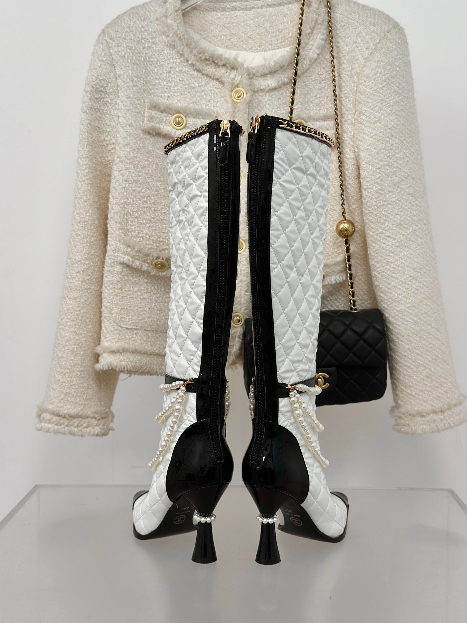 CC High Boots 50mm White Quilted Calfskin