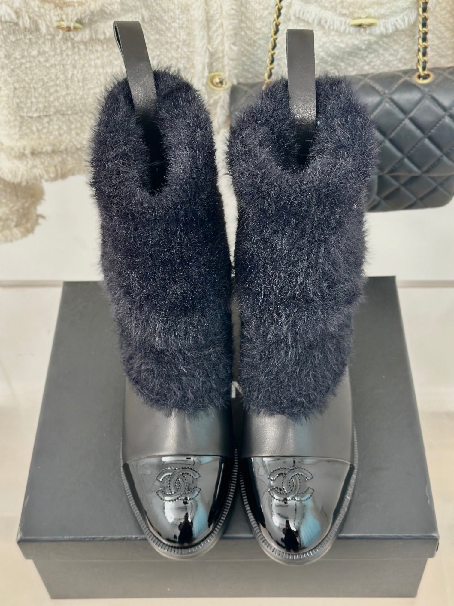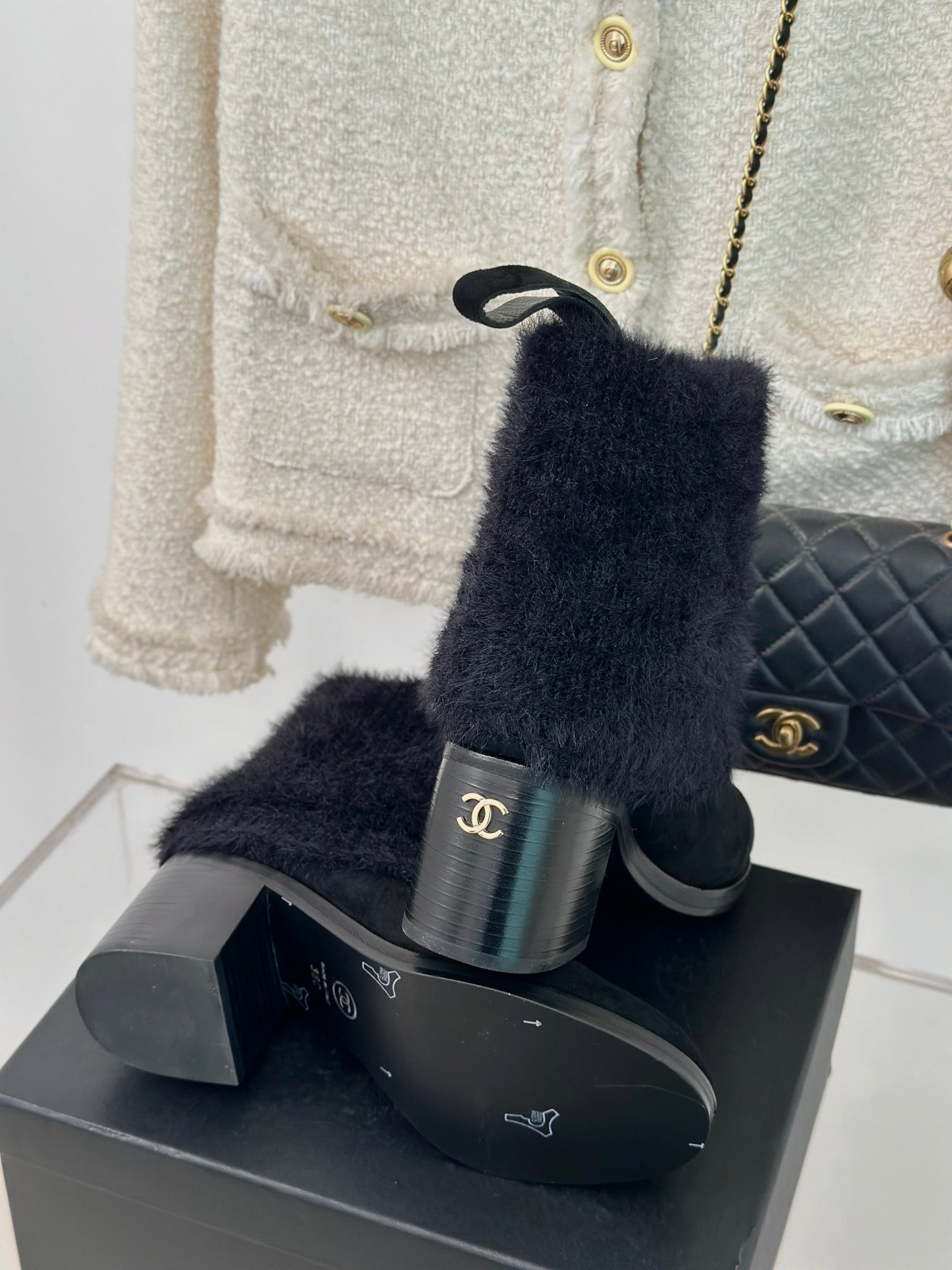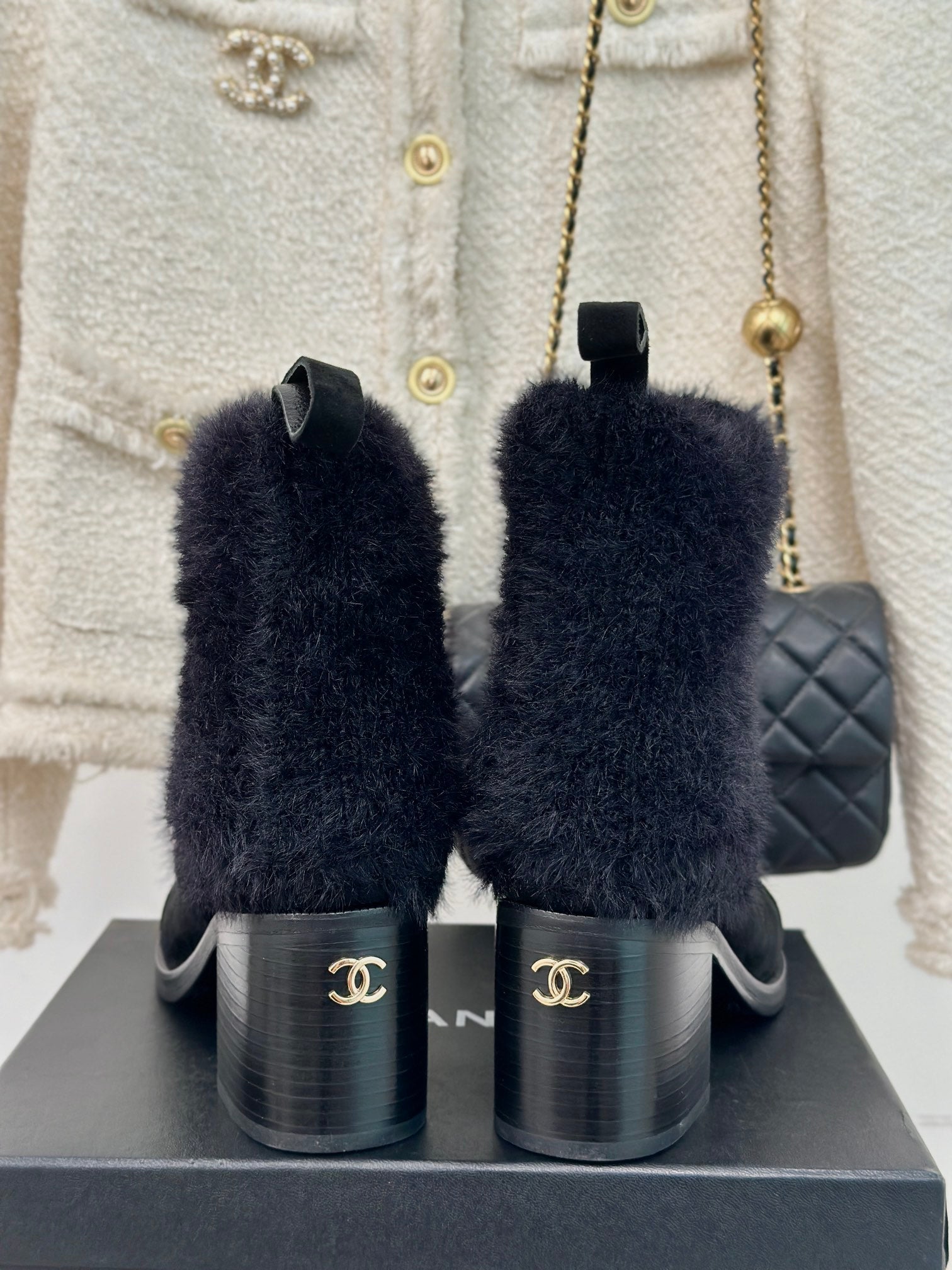 CC Ankle Boots Black Tweed Fabric And Lambskin
